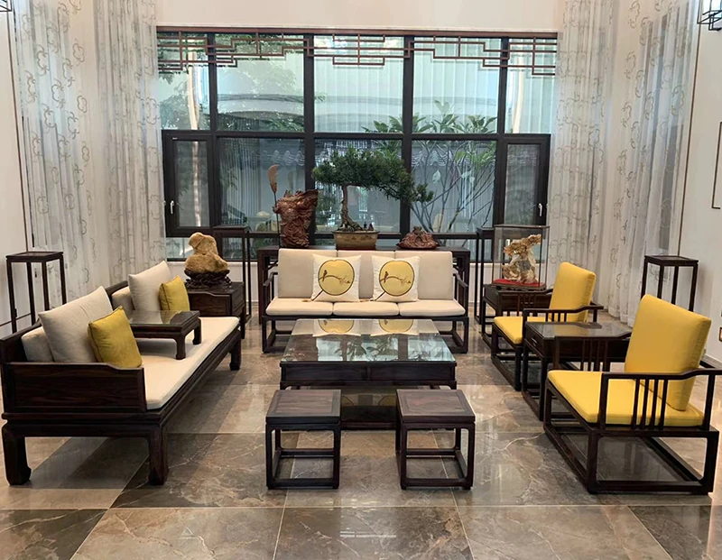 新中式ローハンベッド モダンなアンティークスタイル 静かな思索を促す無垢材ソファ ヴィラやホテルに最適な禅の雰囲気を持つダブルベッド ブラックエボニー製