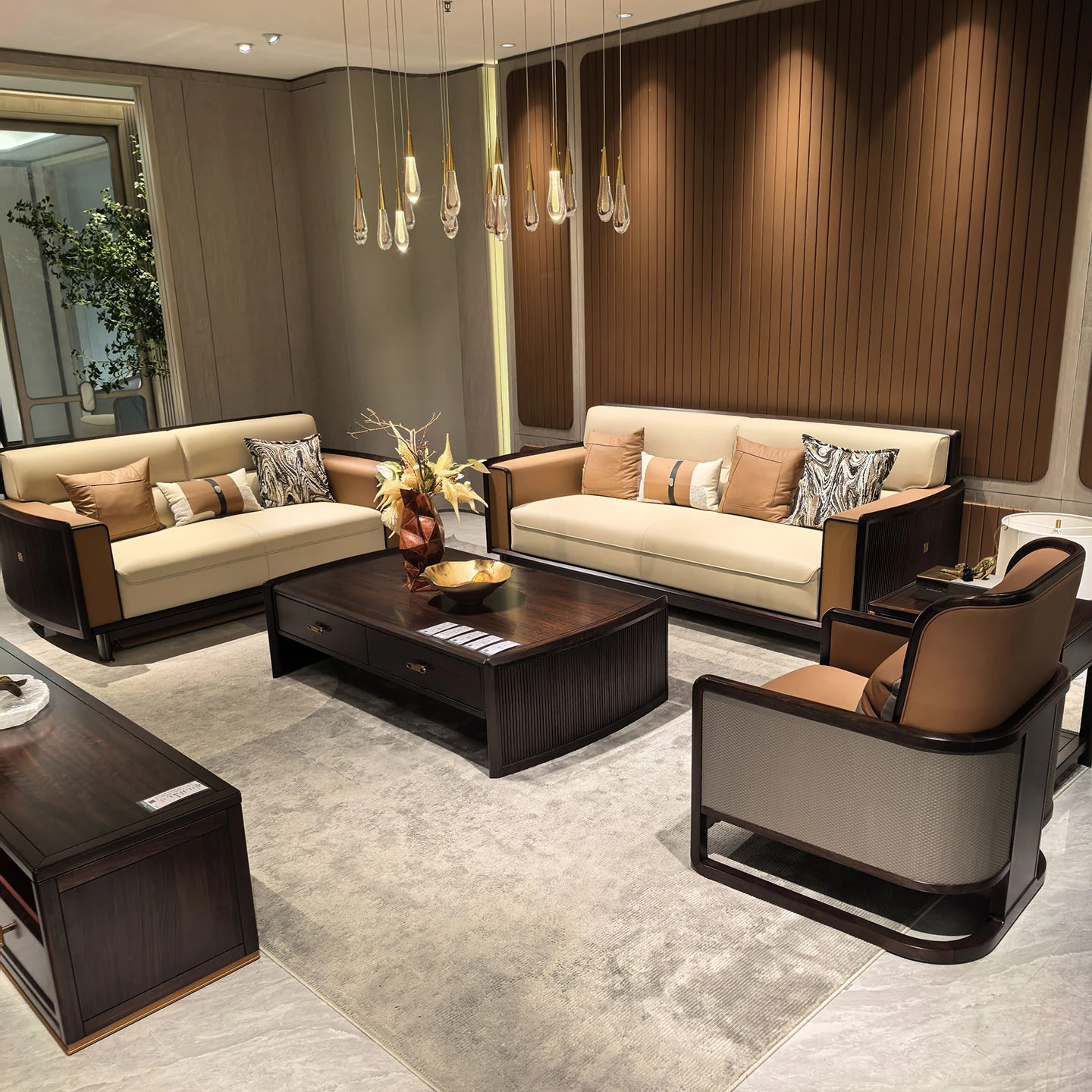 2025 New Luxury Modern Sofa for Small Living Rooms - Stylish New Chinese Solid Wood Genuine Leather Sofa with a High-End Feel