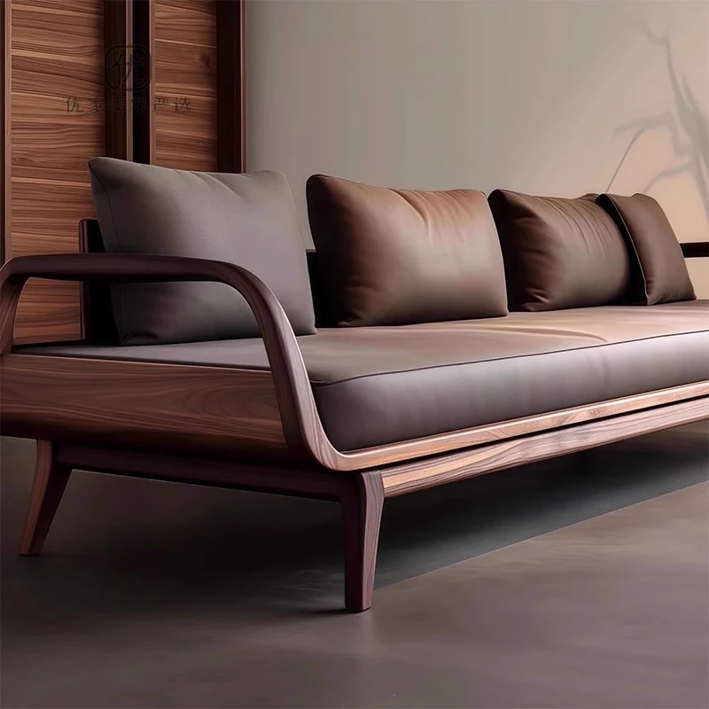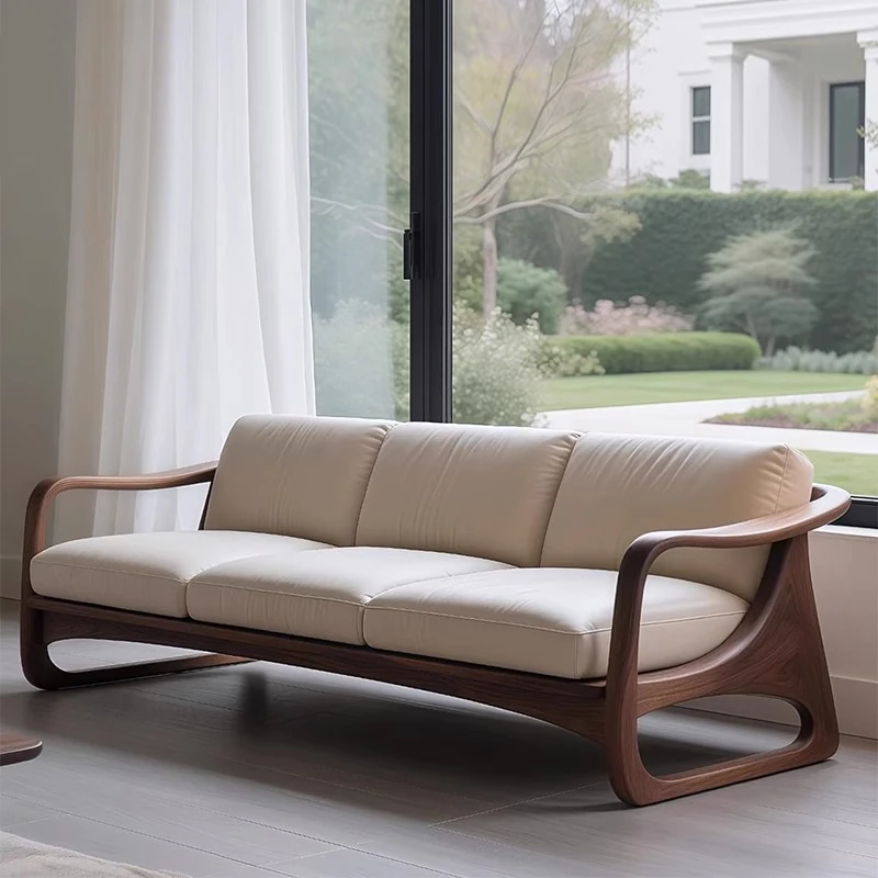 2025 New Arrival: North American Black Walnut Solid Wood Sofa – Modern Minimalist Leather Sofa for Living Rooms of All Sizes