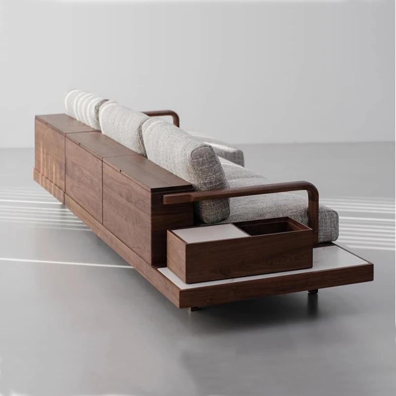2025 New Arrival: North American Black Walnut Sofa for 3-4 People - Minimalist Zen Style Solid Wood Sofa for Small Living Rooms