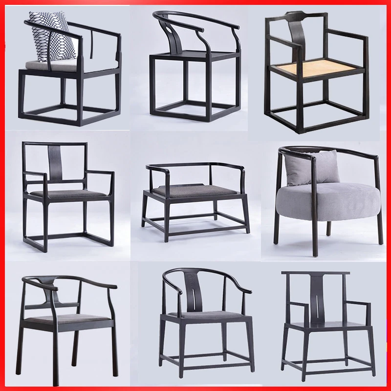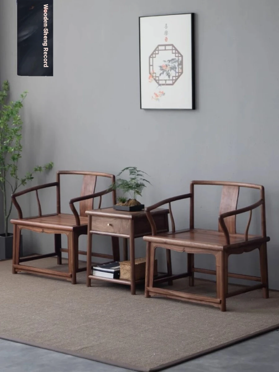 North American Black Walnut Tea Chair - Elegant New Chinese Style Armchair for Tea Rooms, Featuring Solid Wood and Genuine Leather, Perfect for Home Use and Guest Seating.