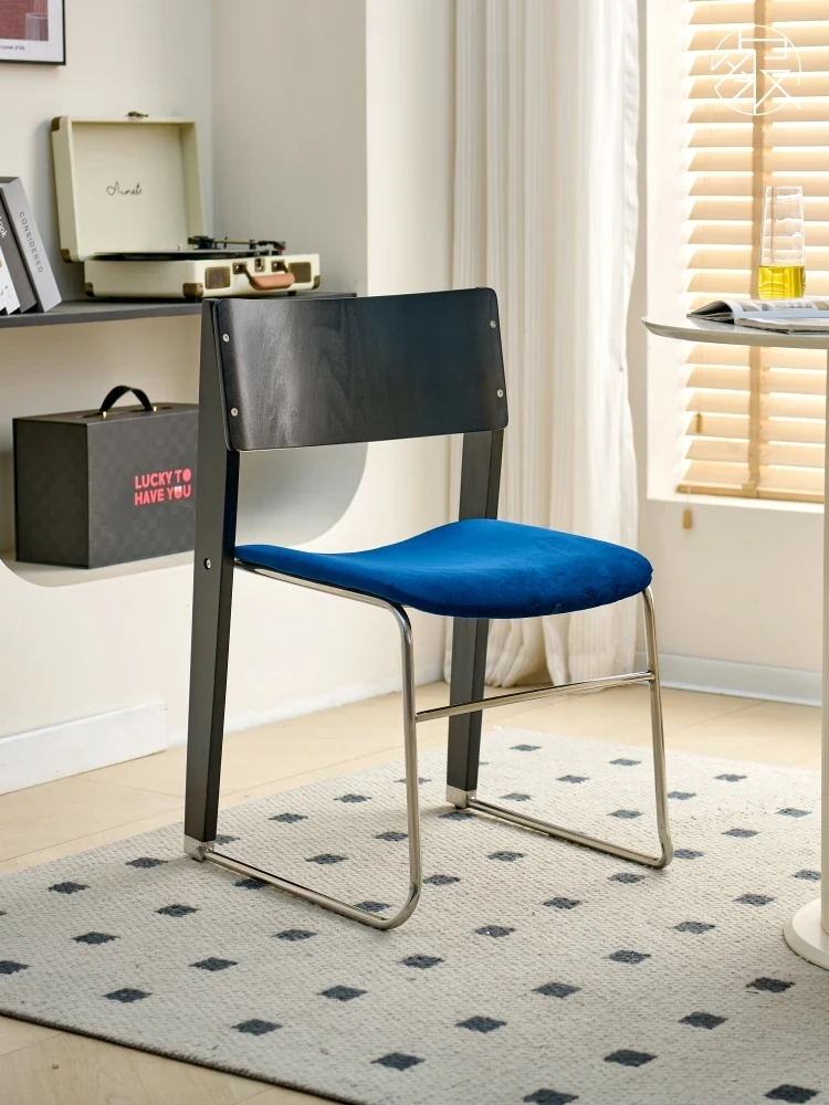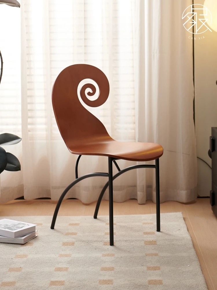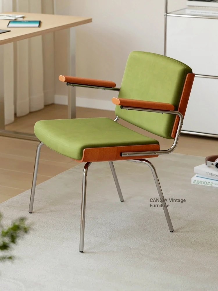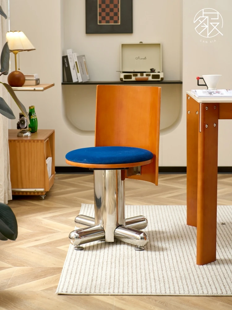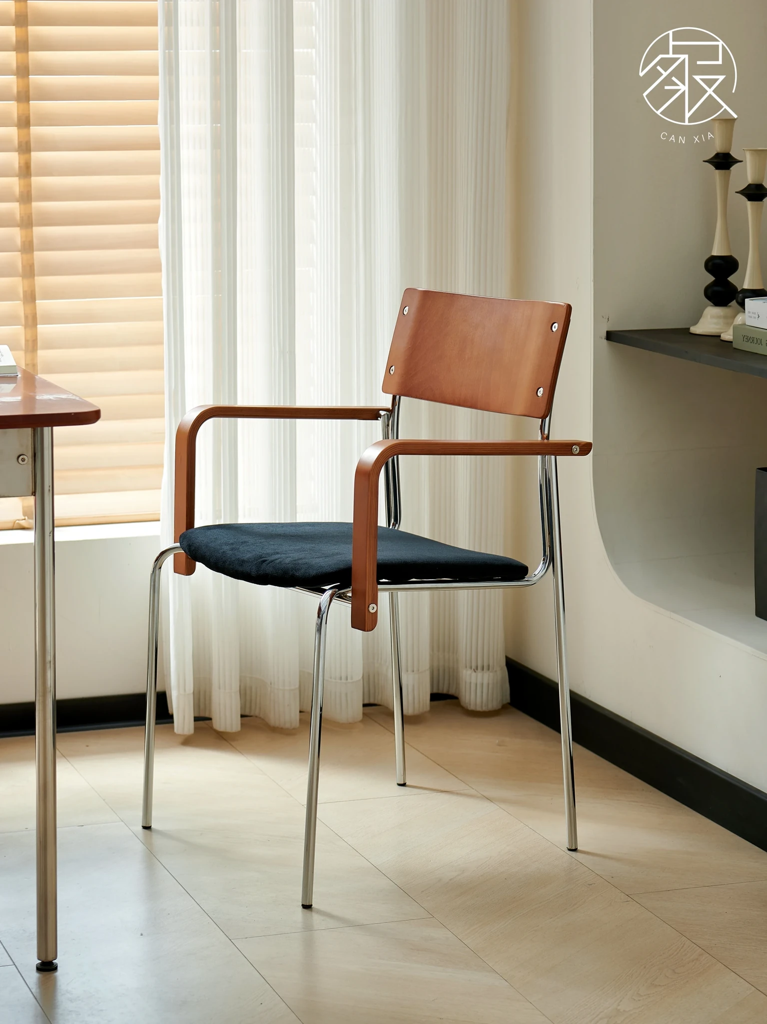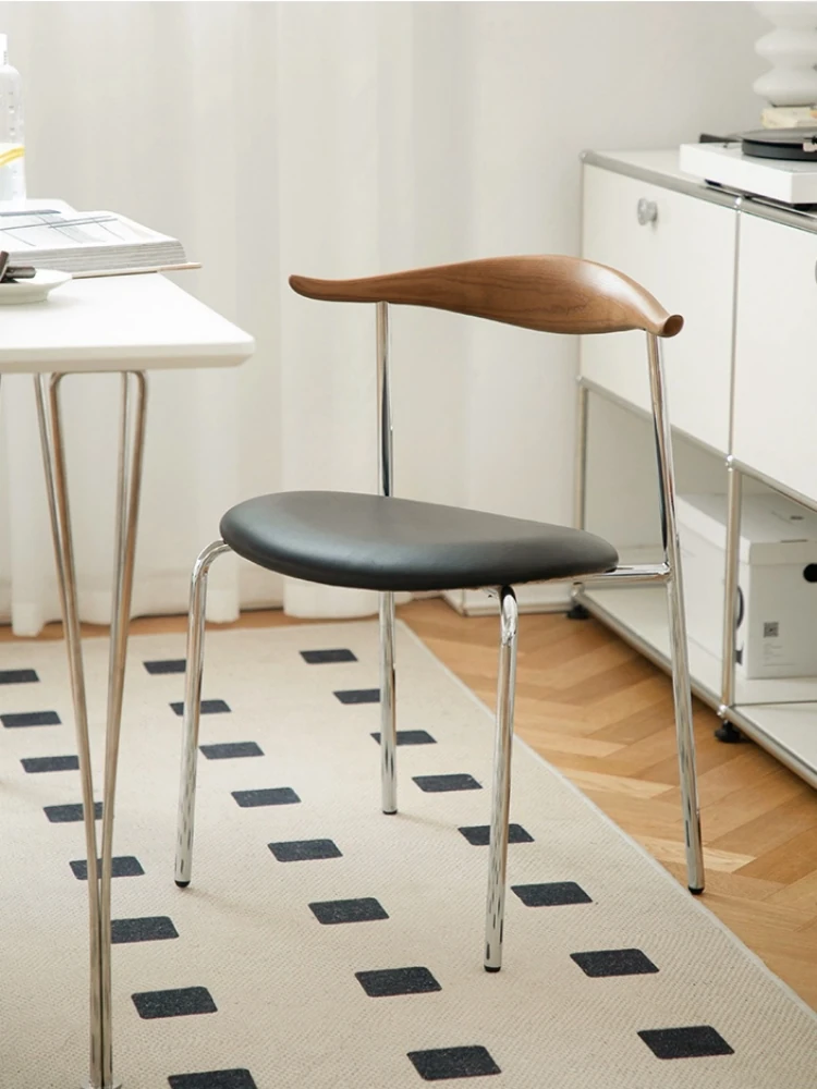 Vintage-Inspired Dining Chair with Stainless Steel and Solid Wood Backrest - Perfect for Small Spaces, Designed by Danish Designers for a Cozy Living Room Experience.