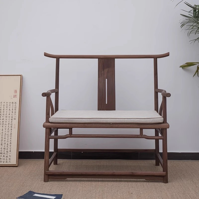Elegant New Chinese Style Black Walnut Office Chair – Solid Wood Master's Chair with Comfortable Long-Seat Design, Perfect for Tea Ceremonies and Executive Spaces.