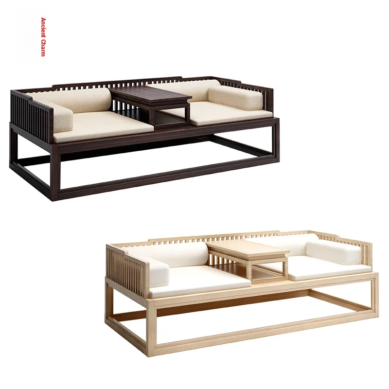 Modern Chinese Style Solid Wood Luohan Bed Sofa Set - Elegant Zen Furniture for Villas, Featuring a Contemporary Daybed Design, In Stock Now!
