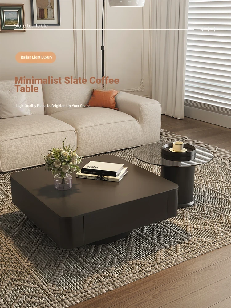 Modern Minimalist Designer Coffee Table - Luxurious and Stylish Square Storage Table with Rock Slab for Relaxing Living Rooms - Perfect for Home and Trending Decor.