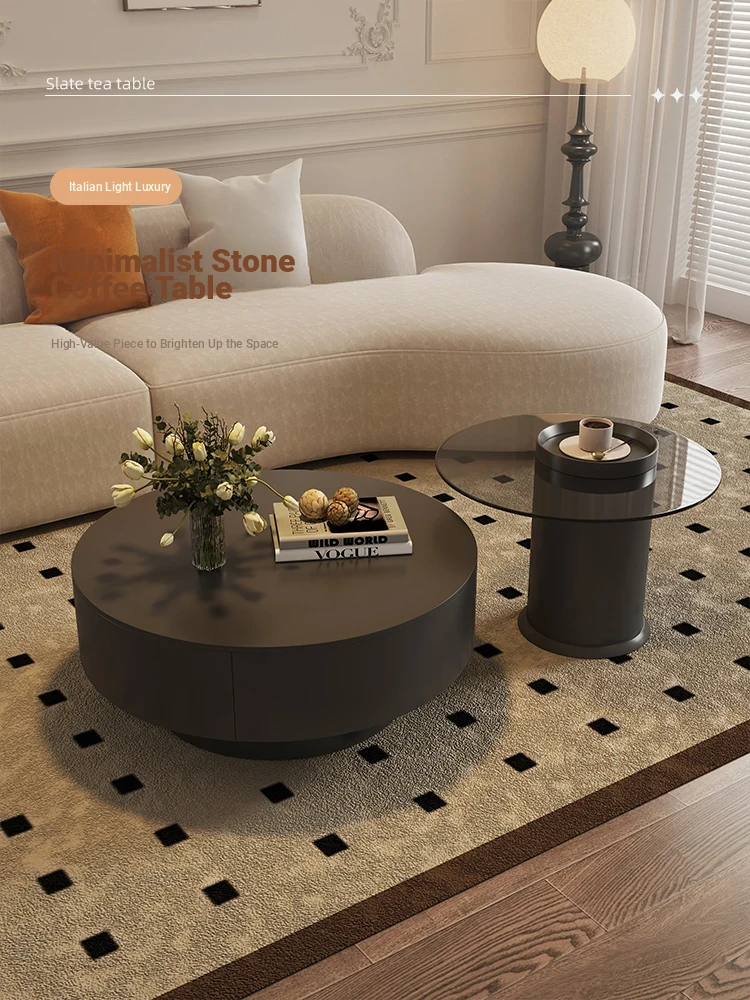 Modern Minimalist Round Coffee Table - Elegant and Space-Saving Design for Small Living Rooms, Perfect for Home Use with a Touch of Luxury and Easy Storage Options.