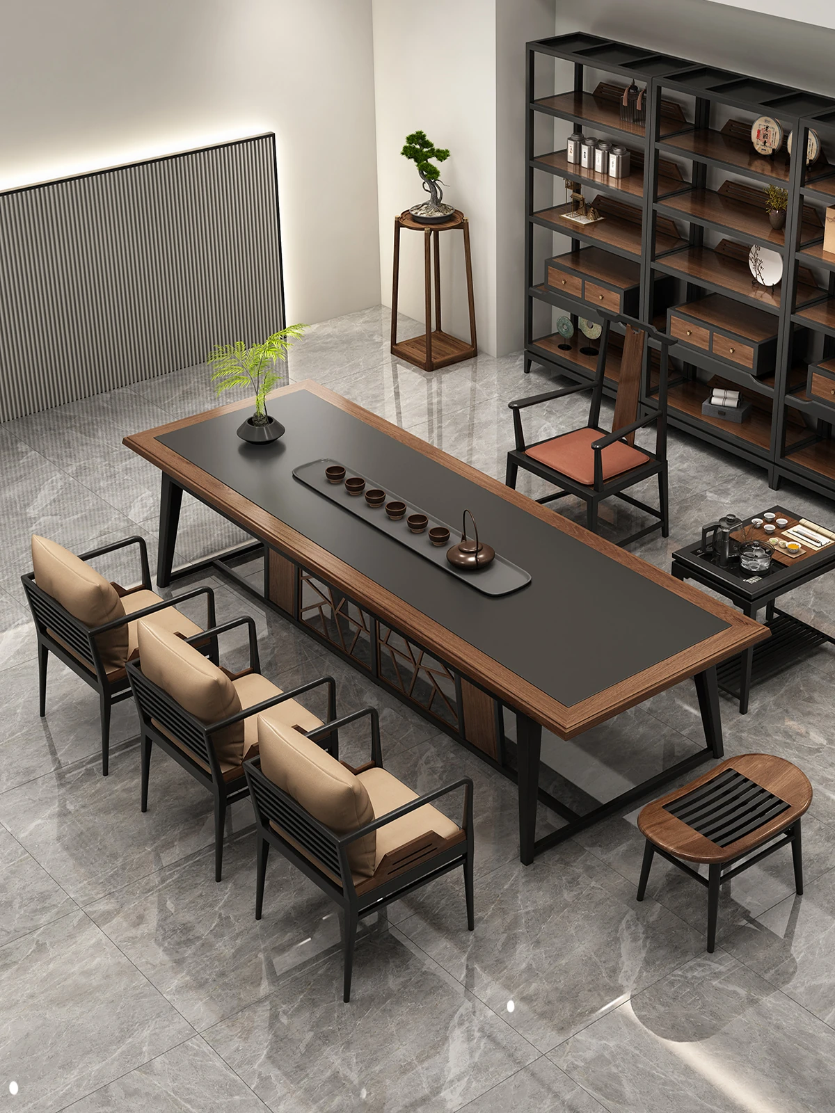 Elegant New Chinese Style Tea Table and Chair Set - Zen-Inspired Solid Wood Office Tea Room Brewing Table in Black Walnut for a Perfect Kung Fu Tea Experience
