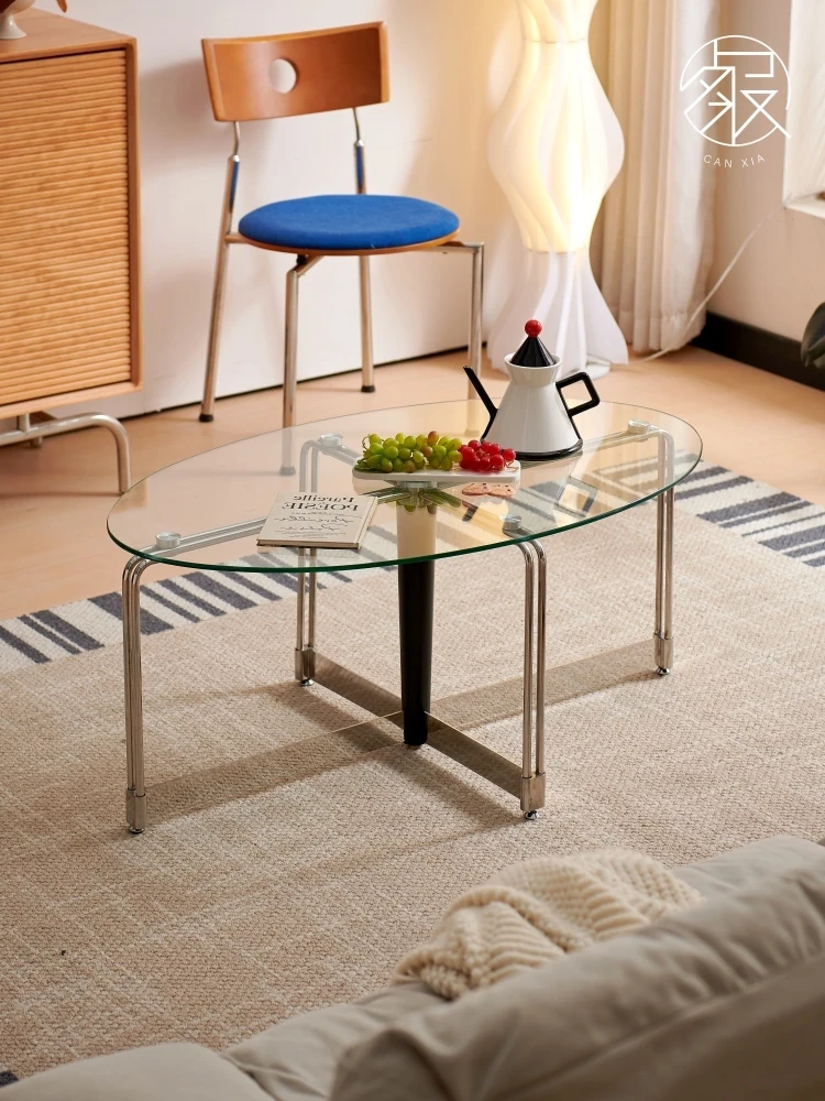 Elegant Vintage Oval Coffee Table - Bauhaus Style, Durable Stainless Steel Frame with Thickened Tempered Glass Top - Perfect for Living Room Décor