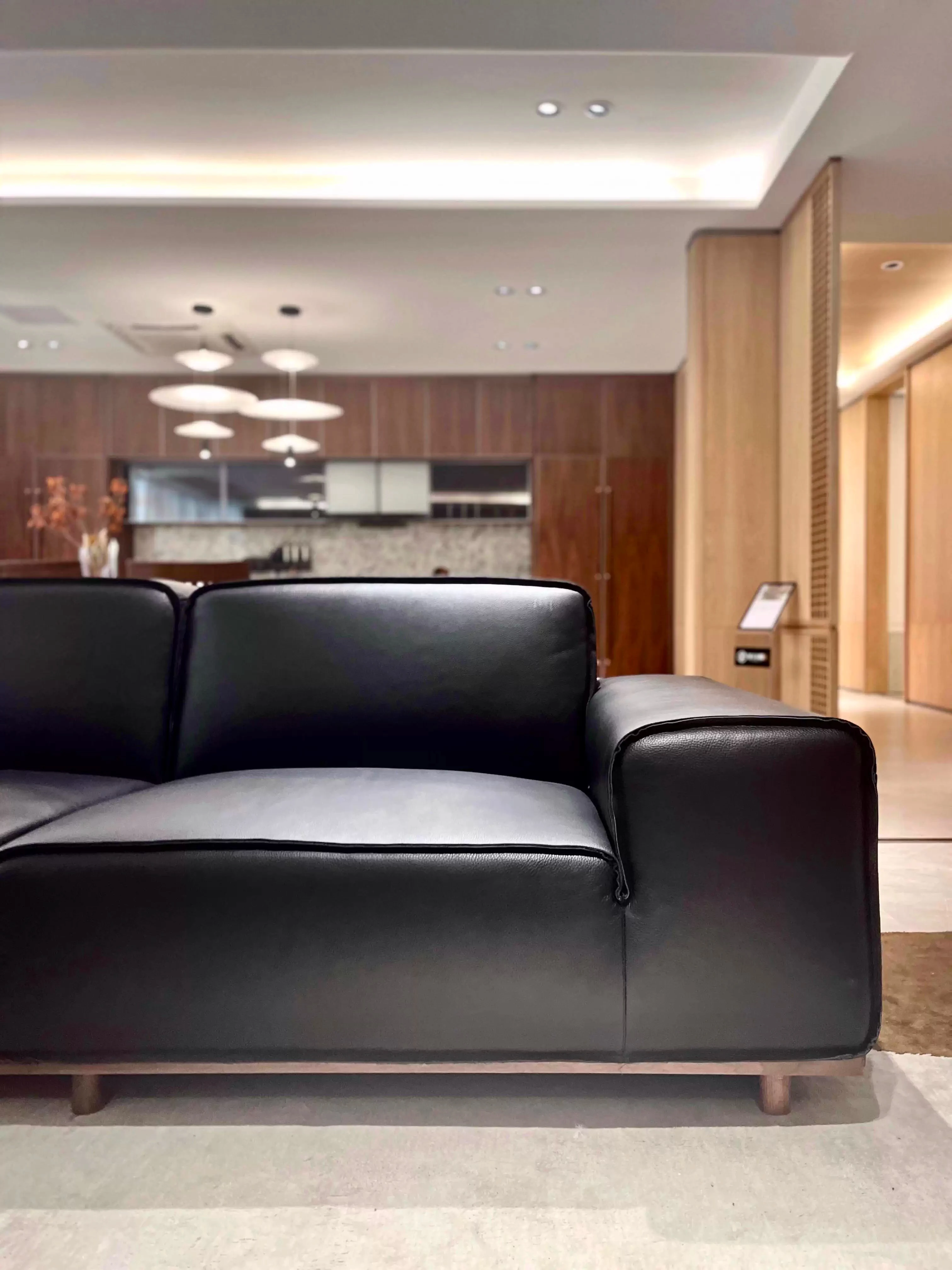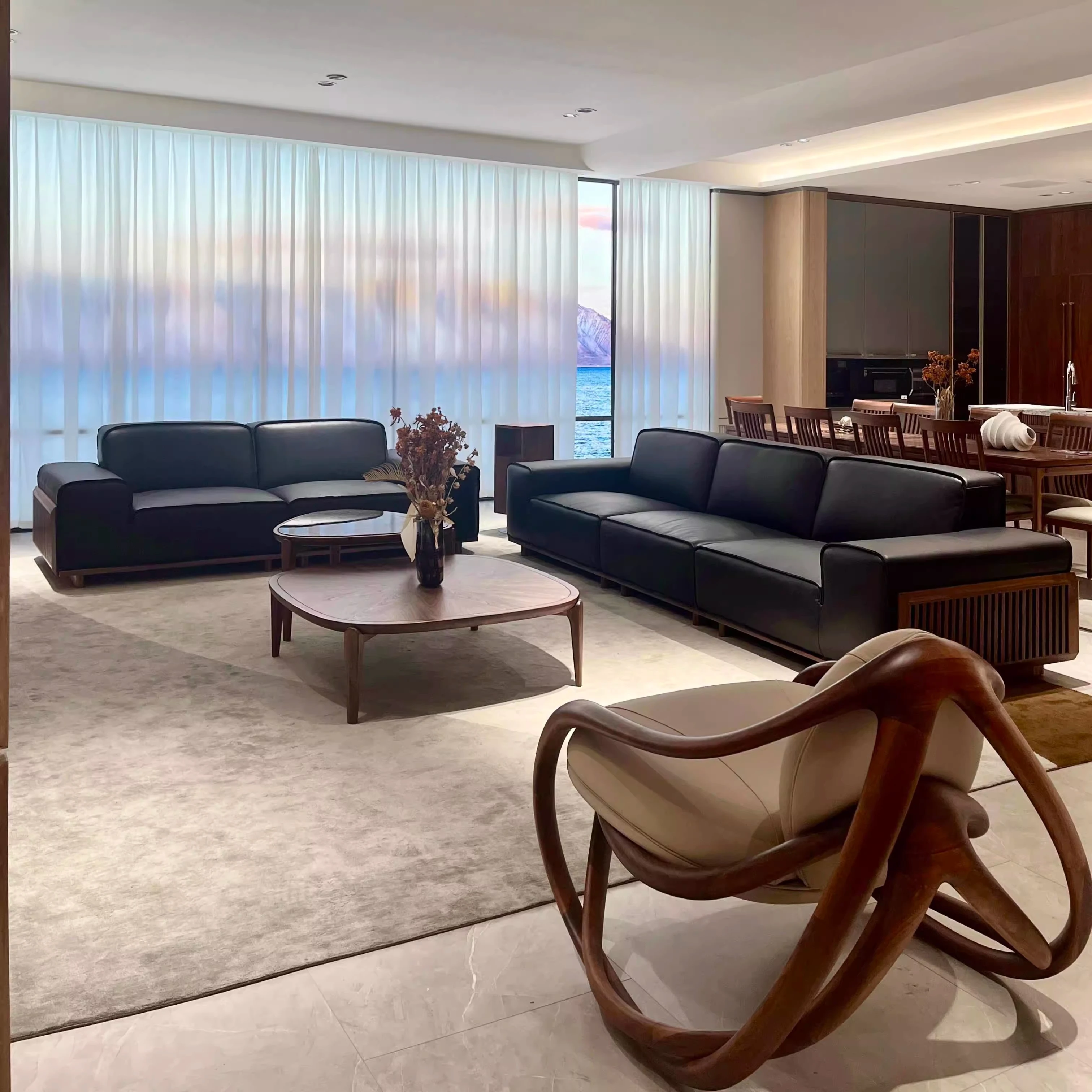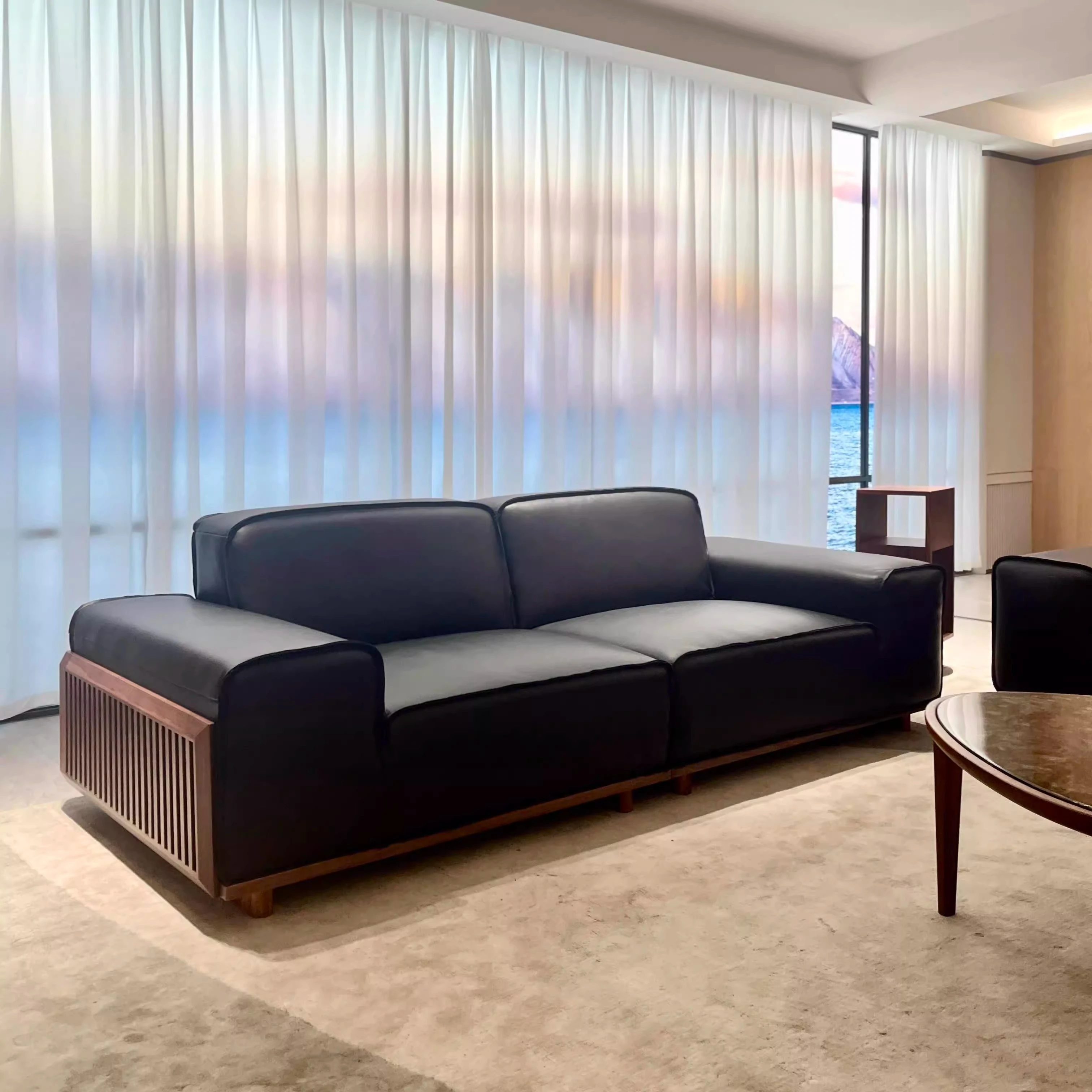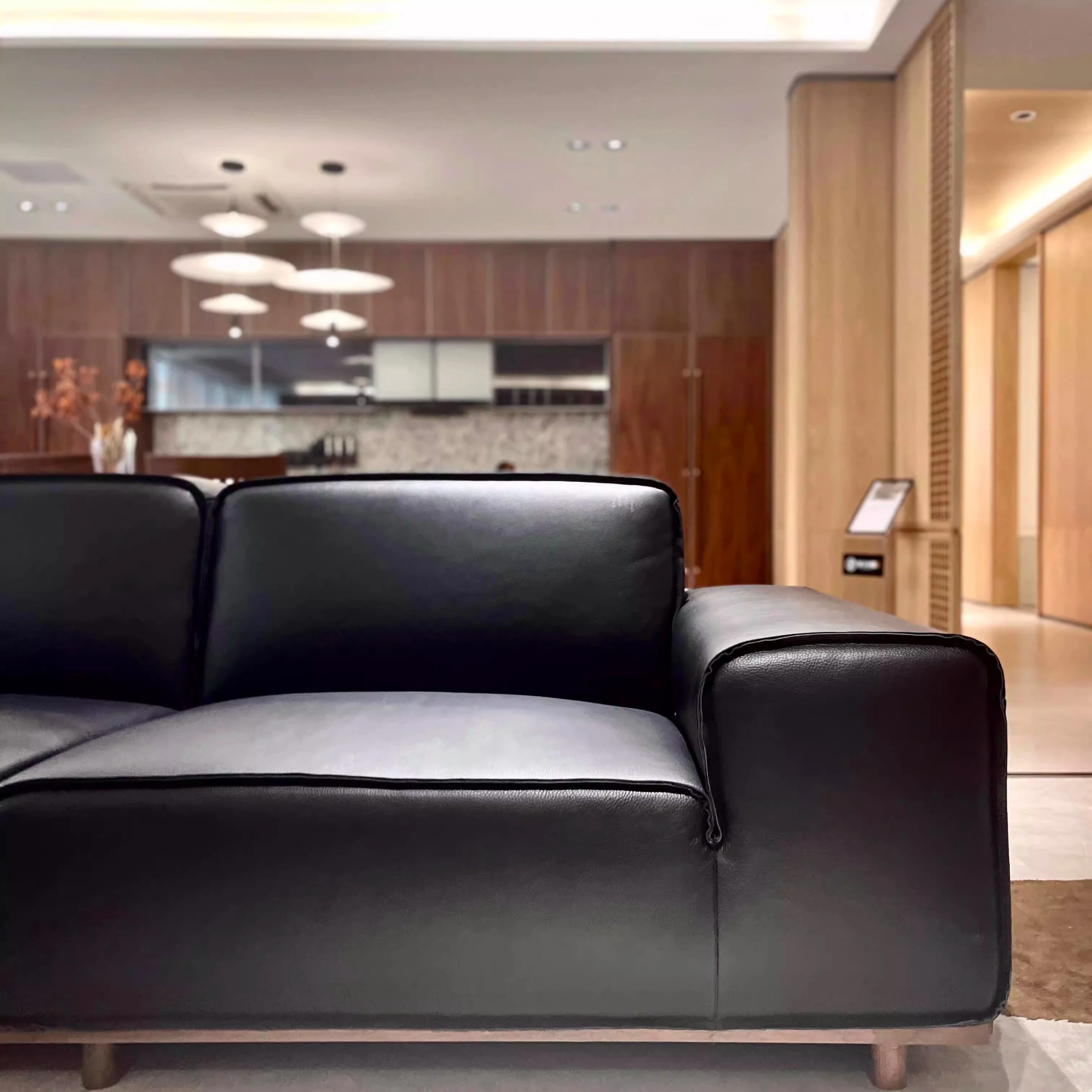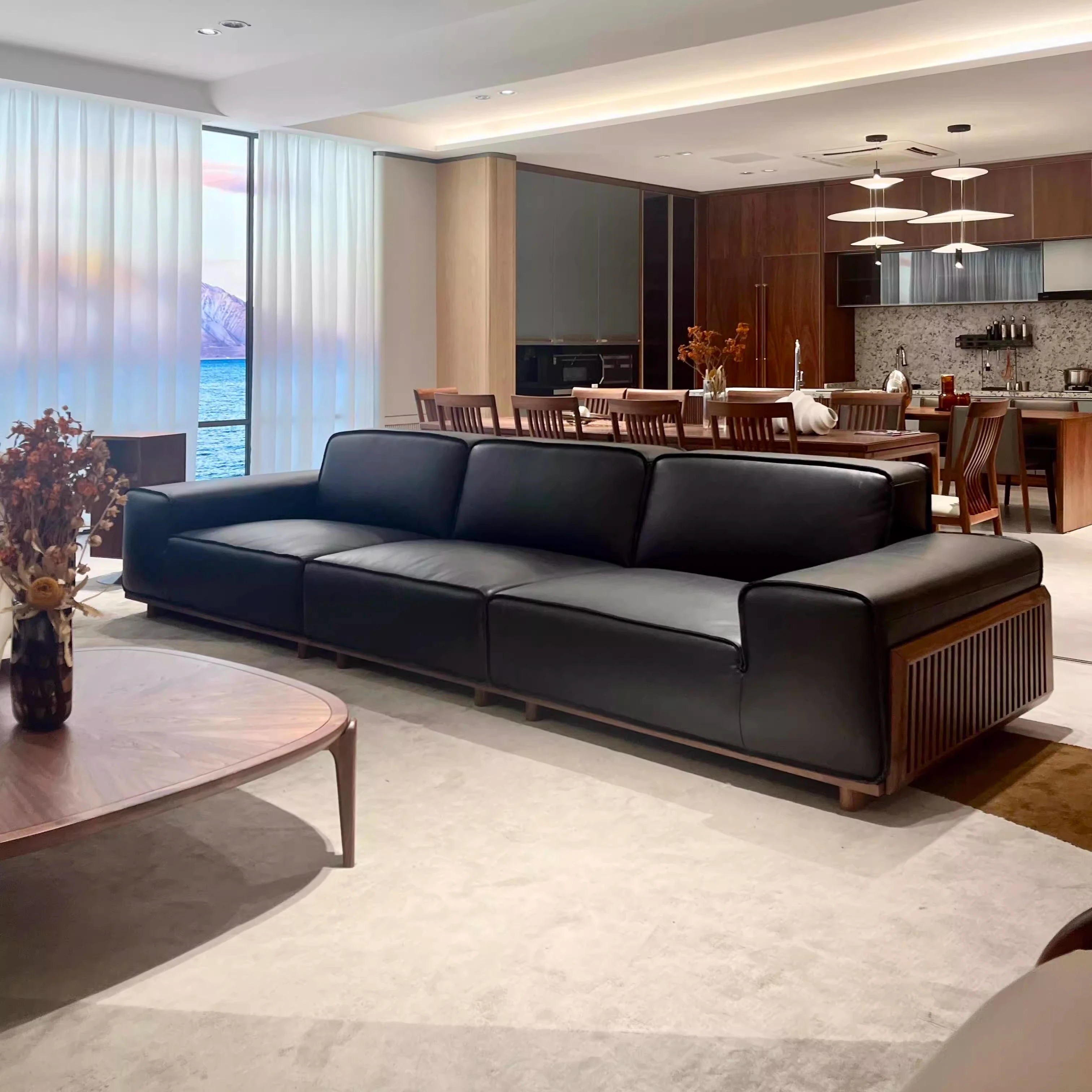 2025 New Arrival Italian Minimalist Black Walnut Sofa - Luxurious Genuine Leather & Solid Wood Straight-Line Design for Modern Living Spaces