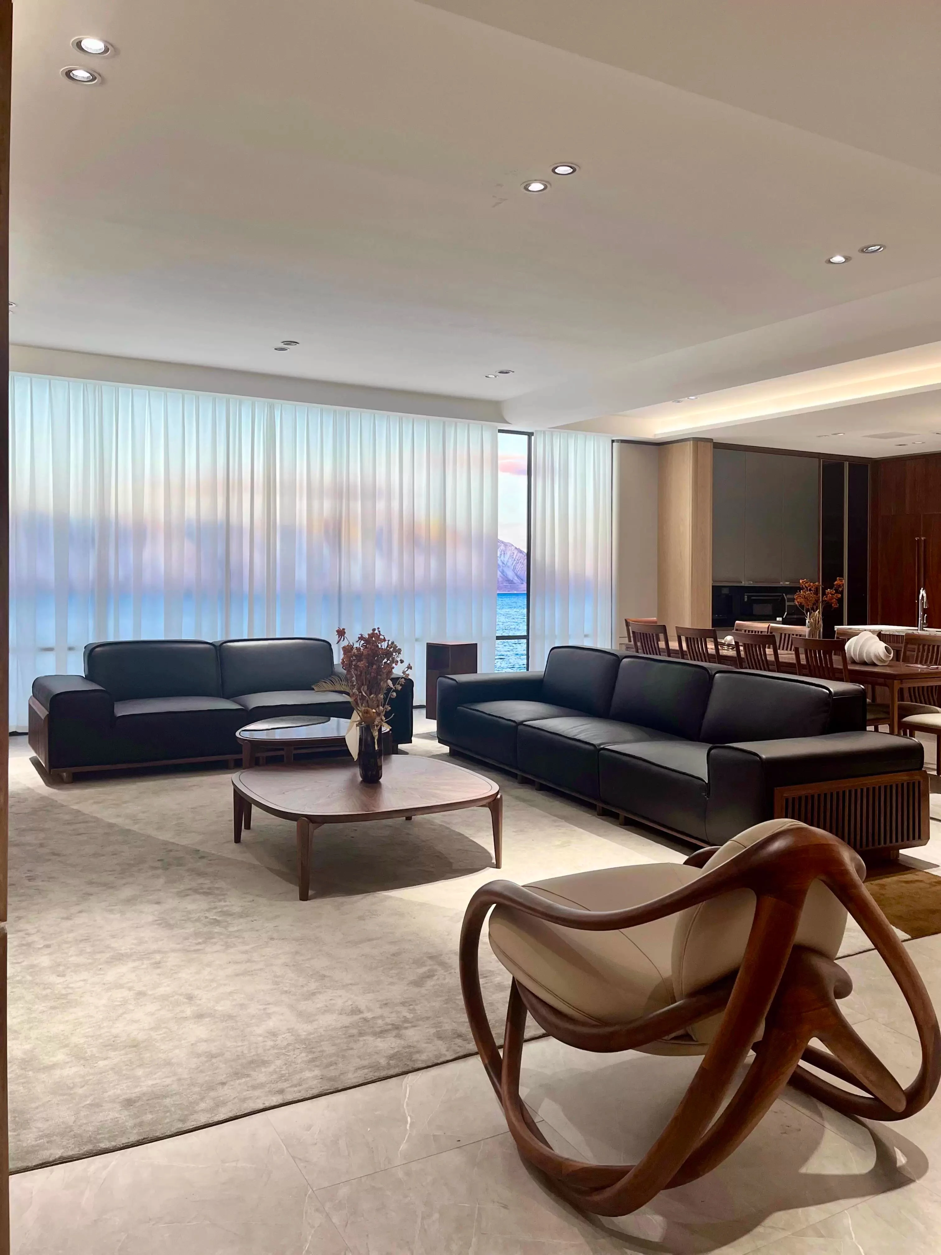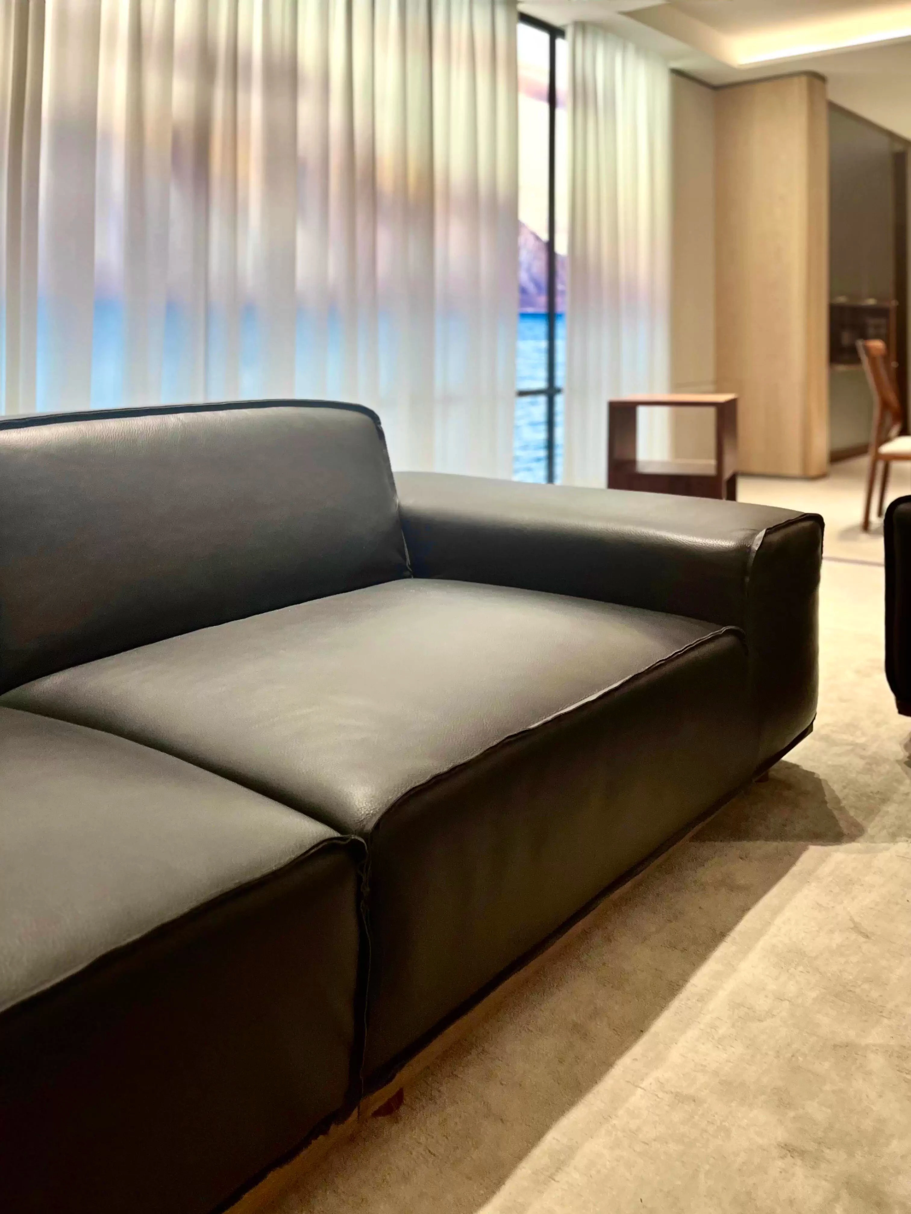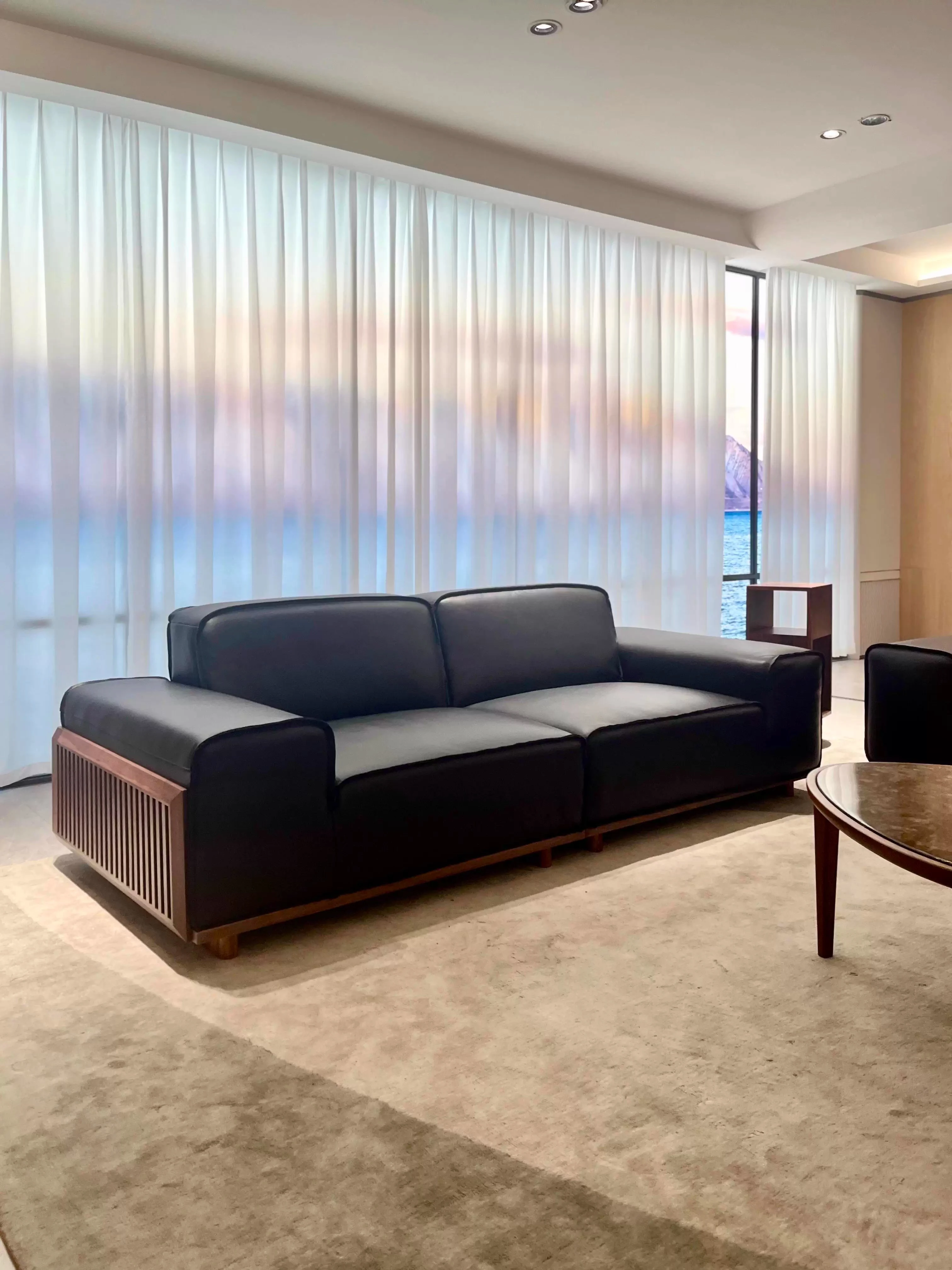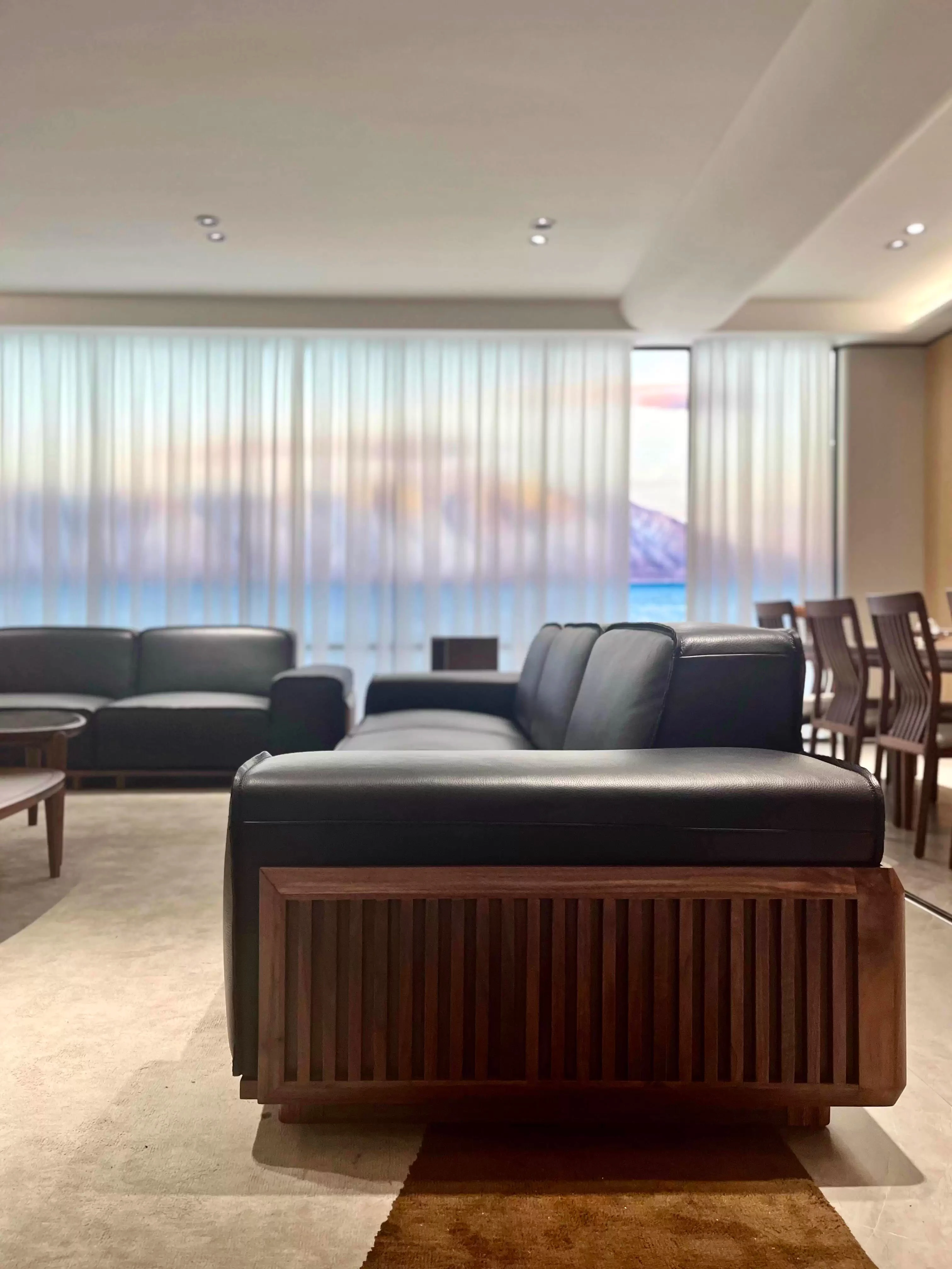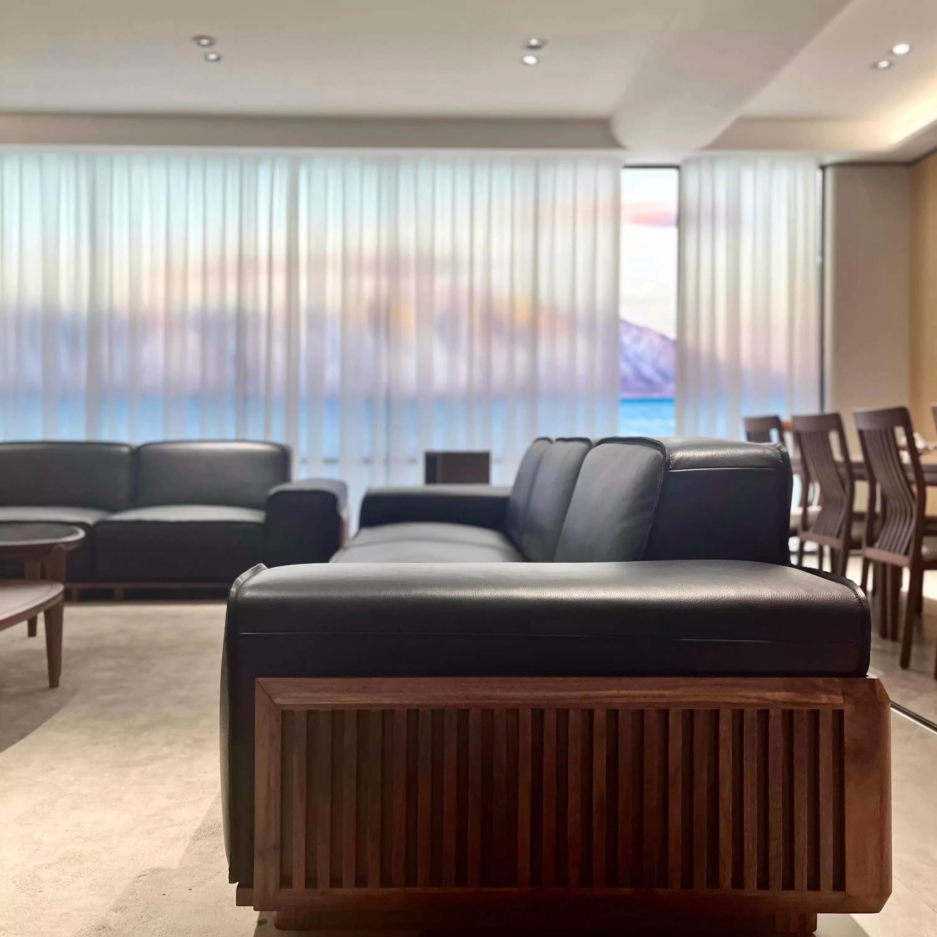 2025 New Arrival Italian Minimalist Black Walnut Sofa - Luxurious Genuine Leather & Solid Wood Straight-Line Design for Modern Living Spaces