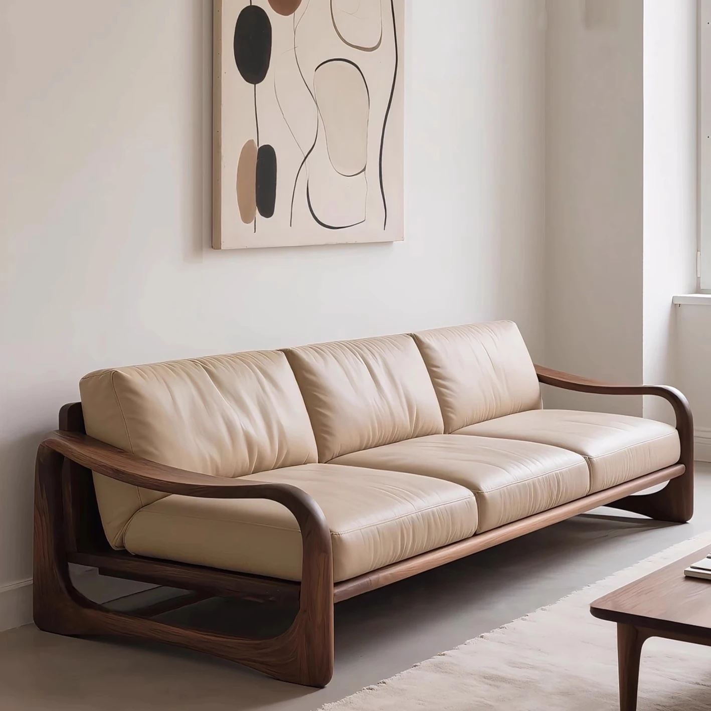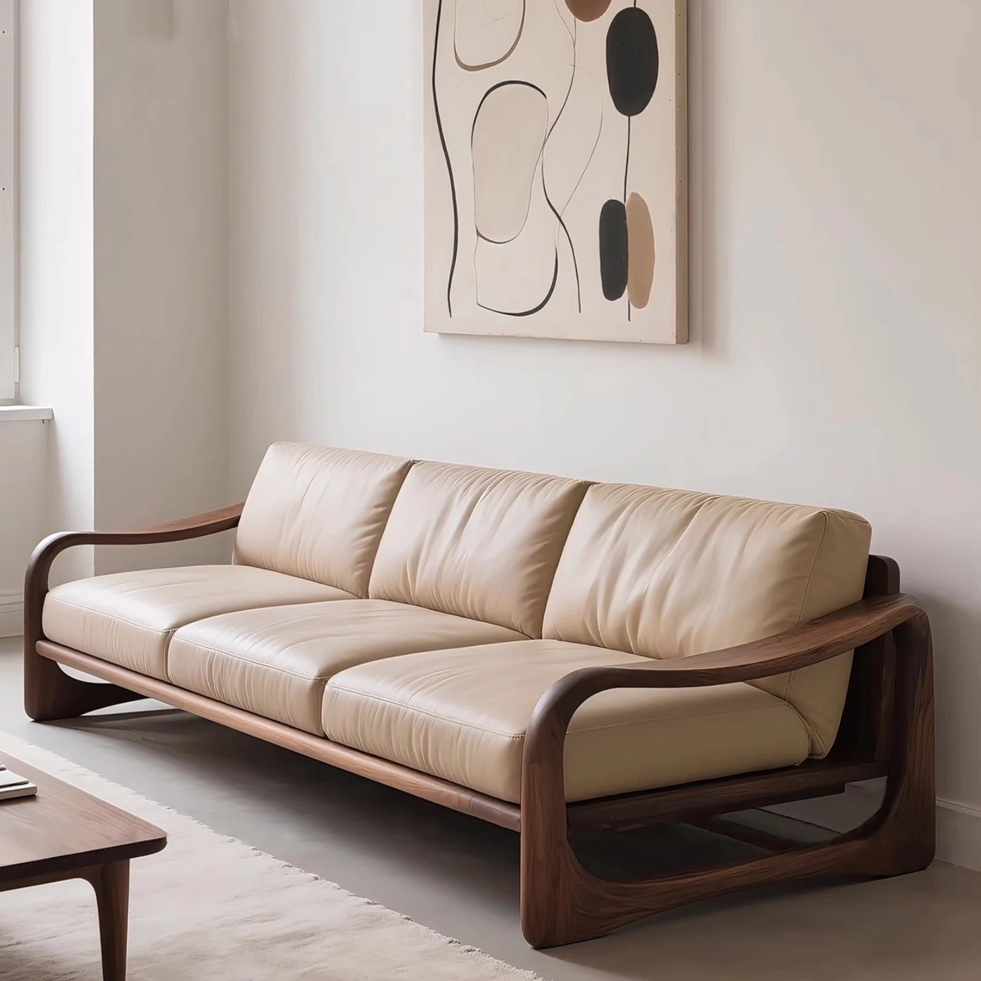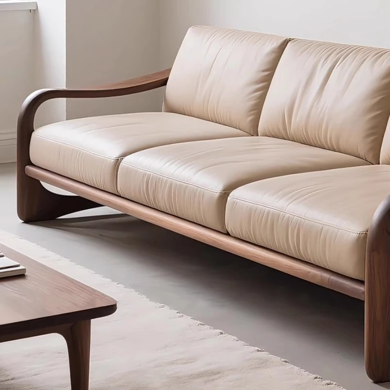 2025 New Arrival: Modern Minimalist Genuine Leather Sofa in North American Black Walnut - Elegant Straight-Line Design for Your Living Room