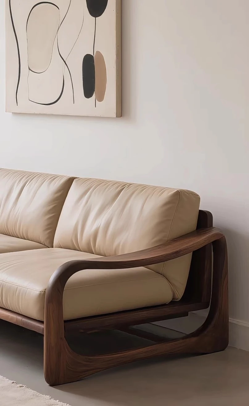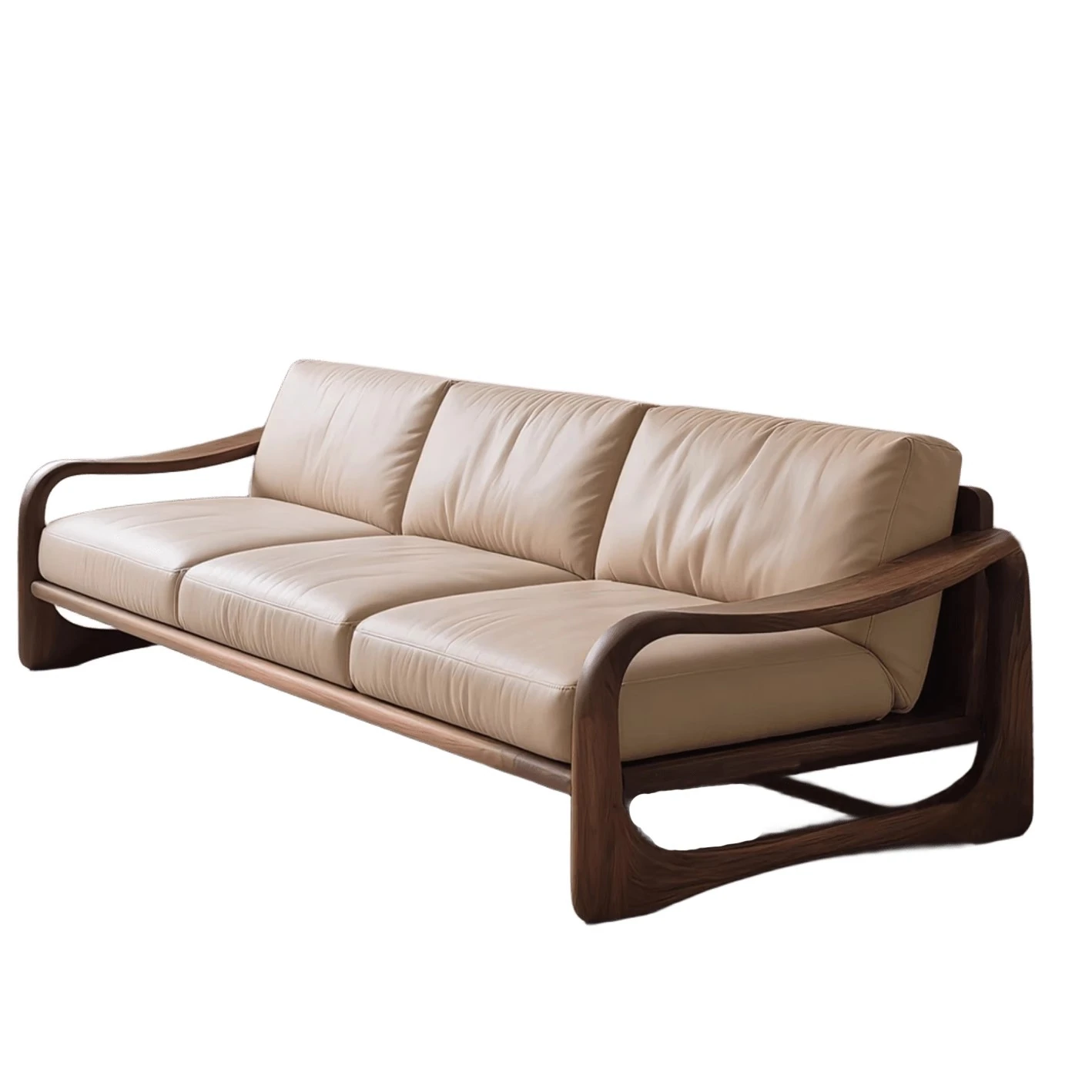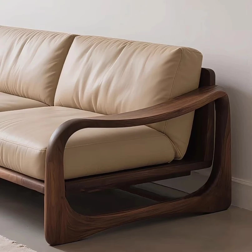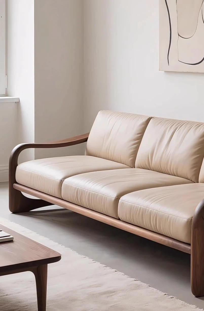 2025 New Arrival: Modern Minimalist Genuine Leather Sofa in North American Black Walnut - Elegant Straight-Line Design for Your Living Room