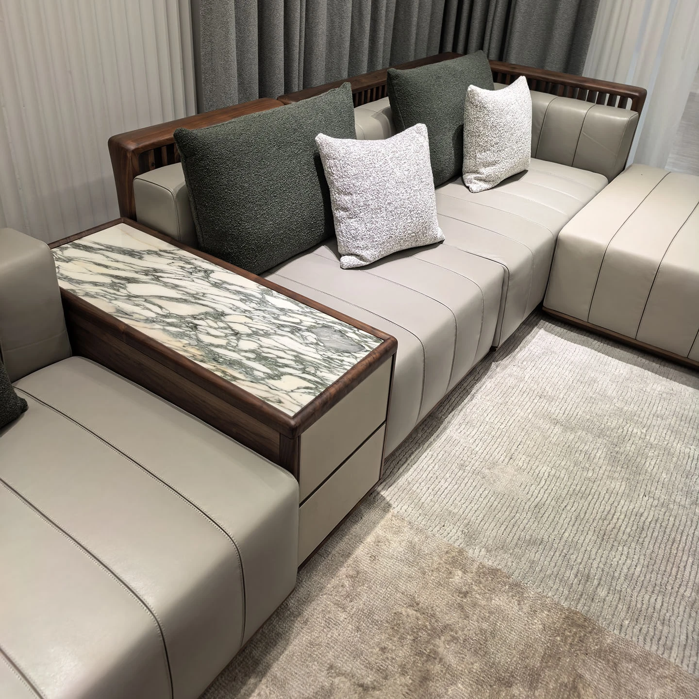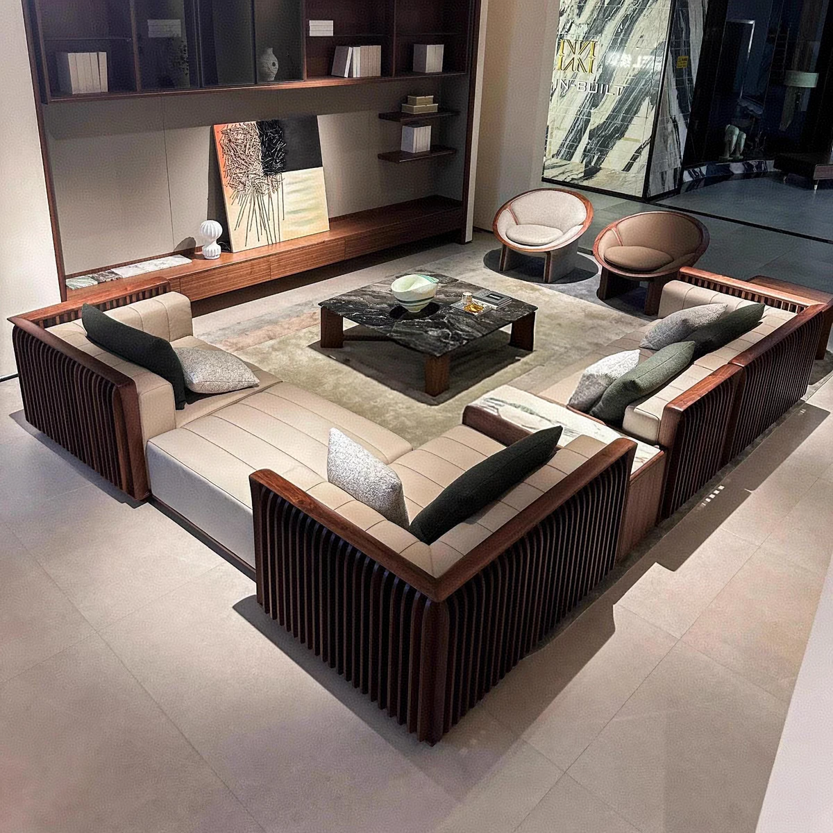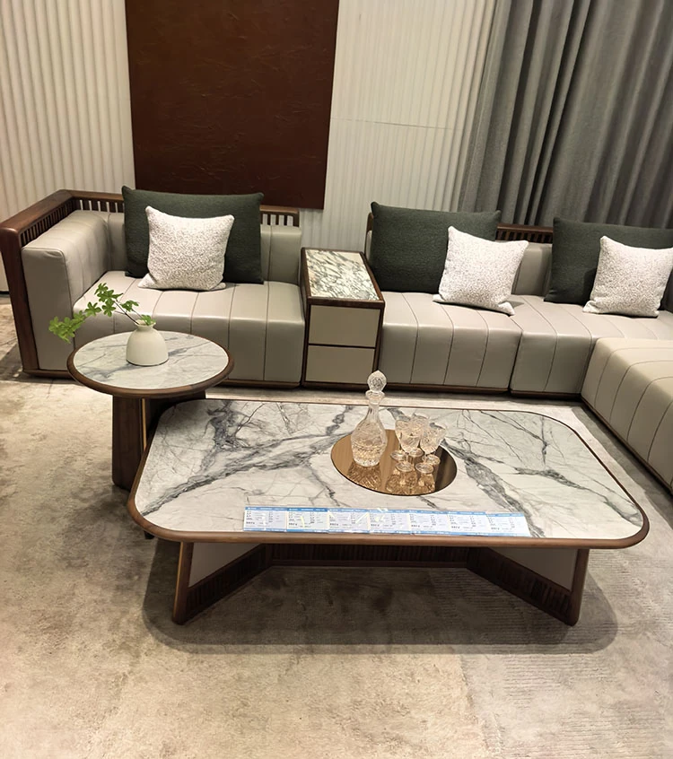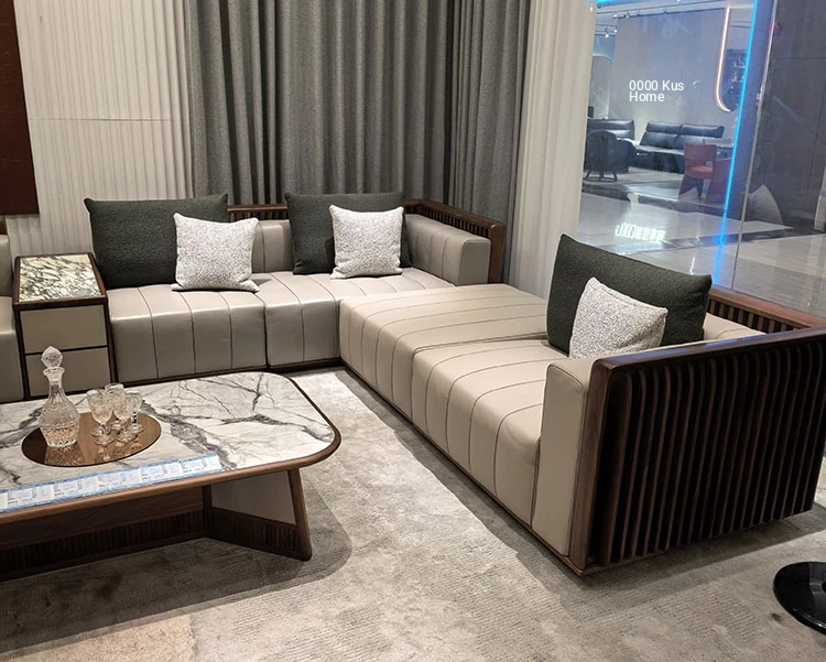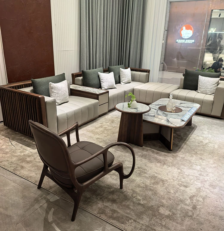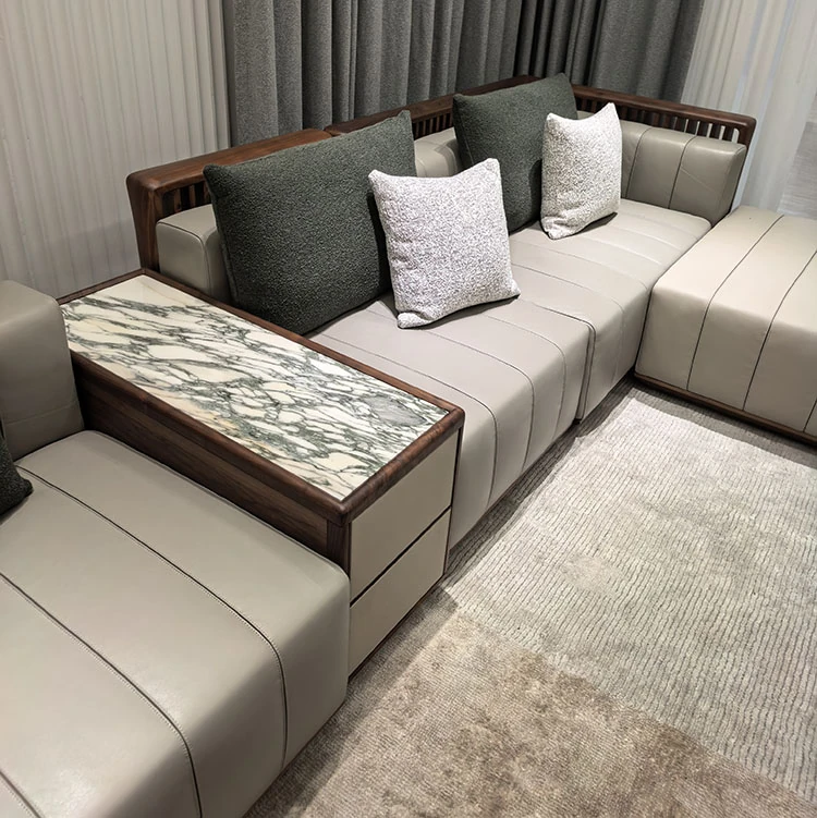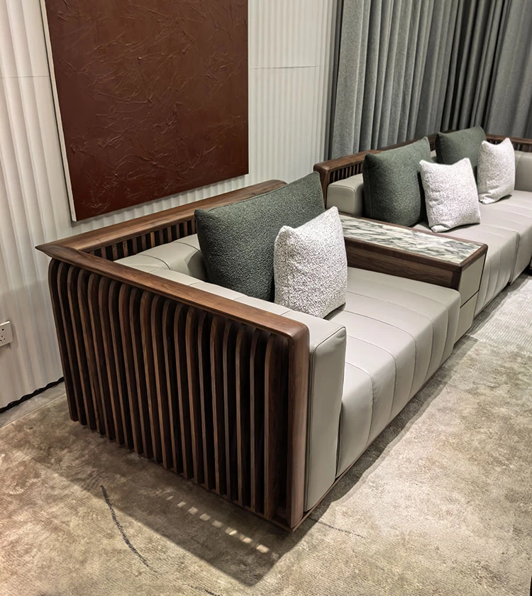 2025 New Arrival: North American Black Walnut Solid Wood Sofa – Modern Minimalist Leather Sofa for Living Rooms of All Sizes