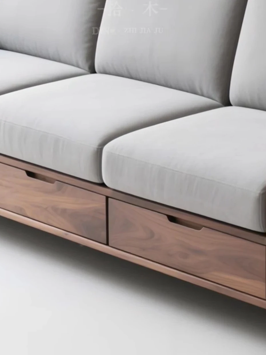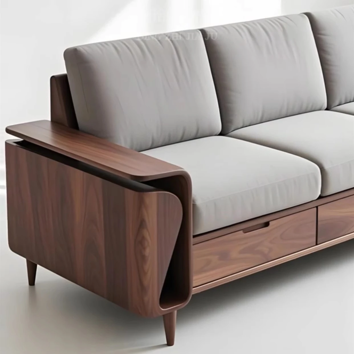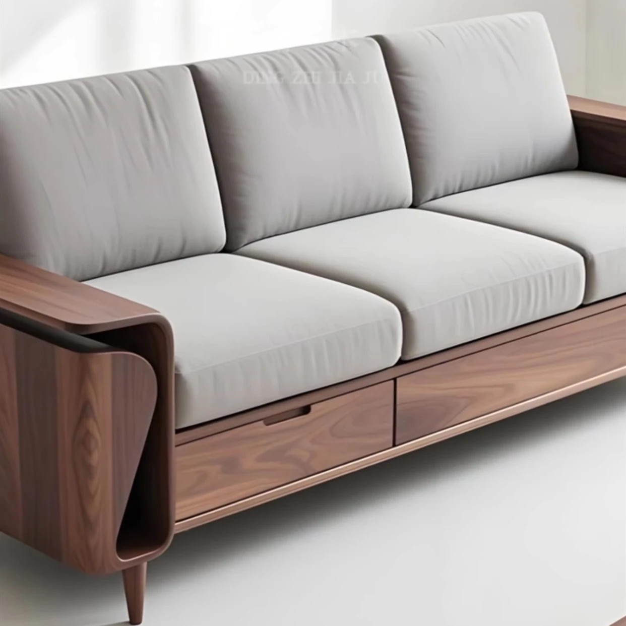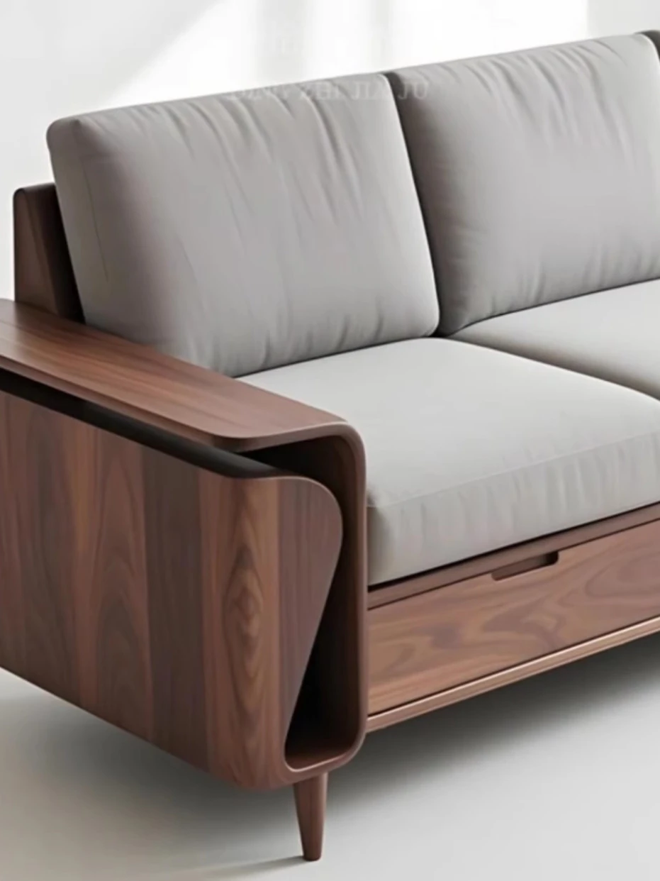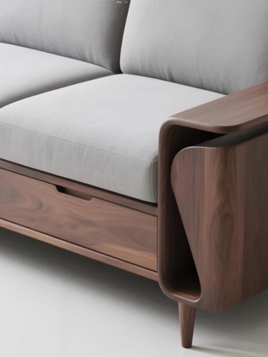 2025 New Elegant Minimalist Song Dynasty Style Black Walnut Solid Wood Sofa - Space-Saving Storage Sofa for Small Living Rooms