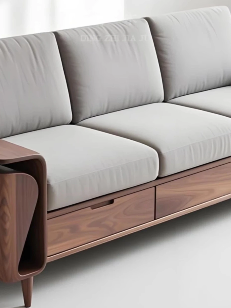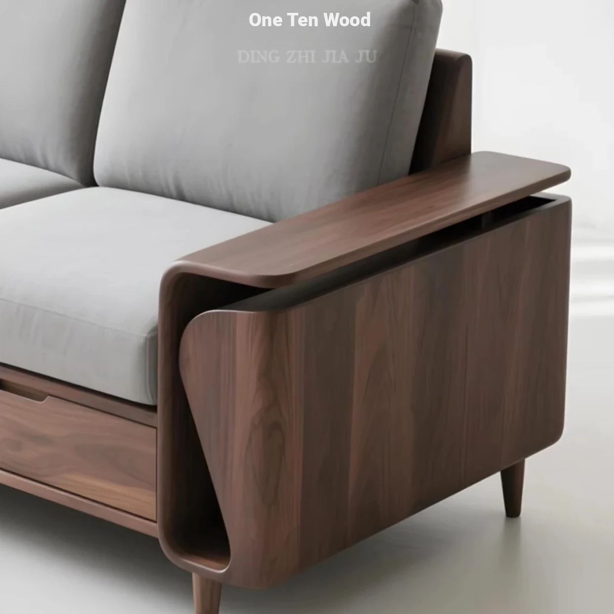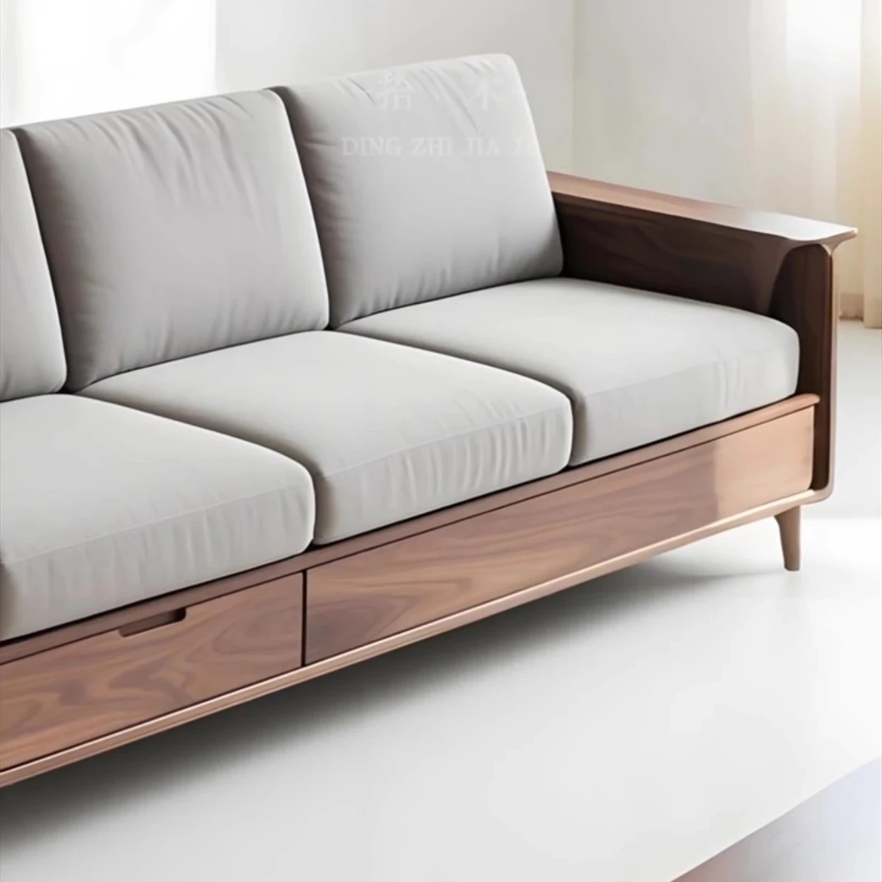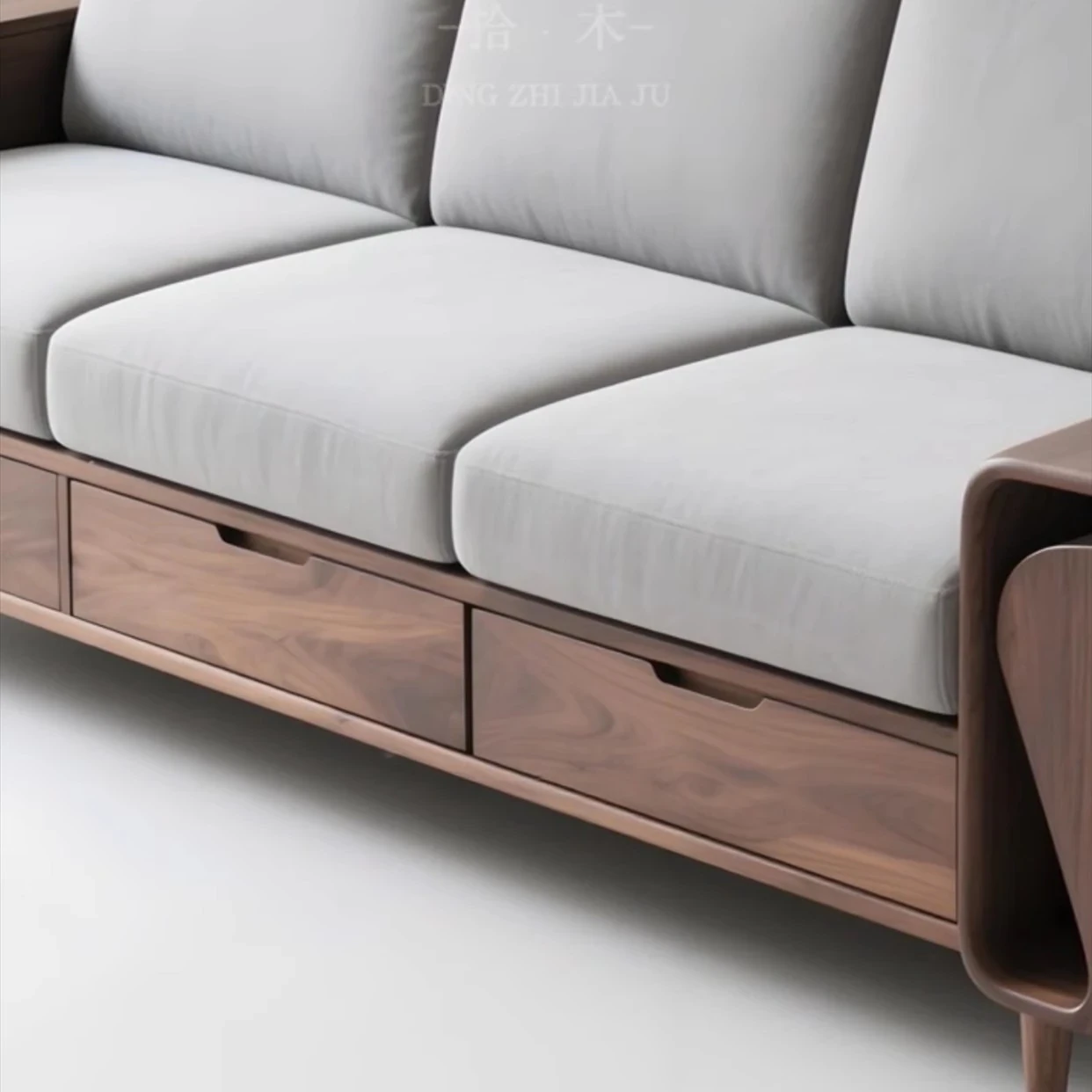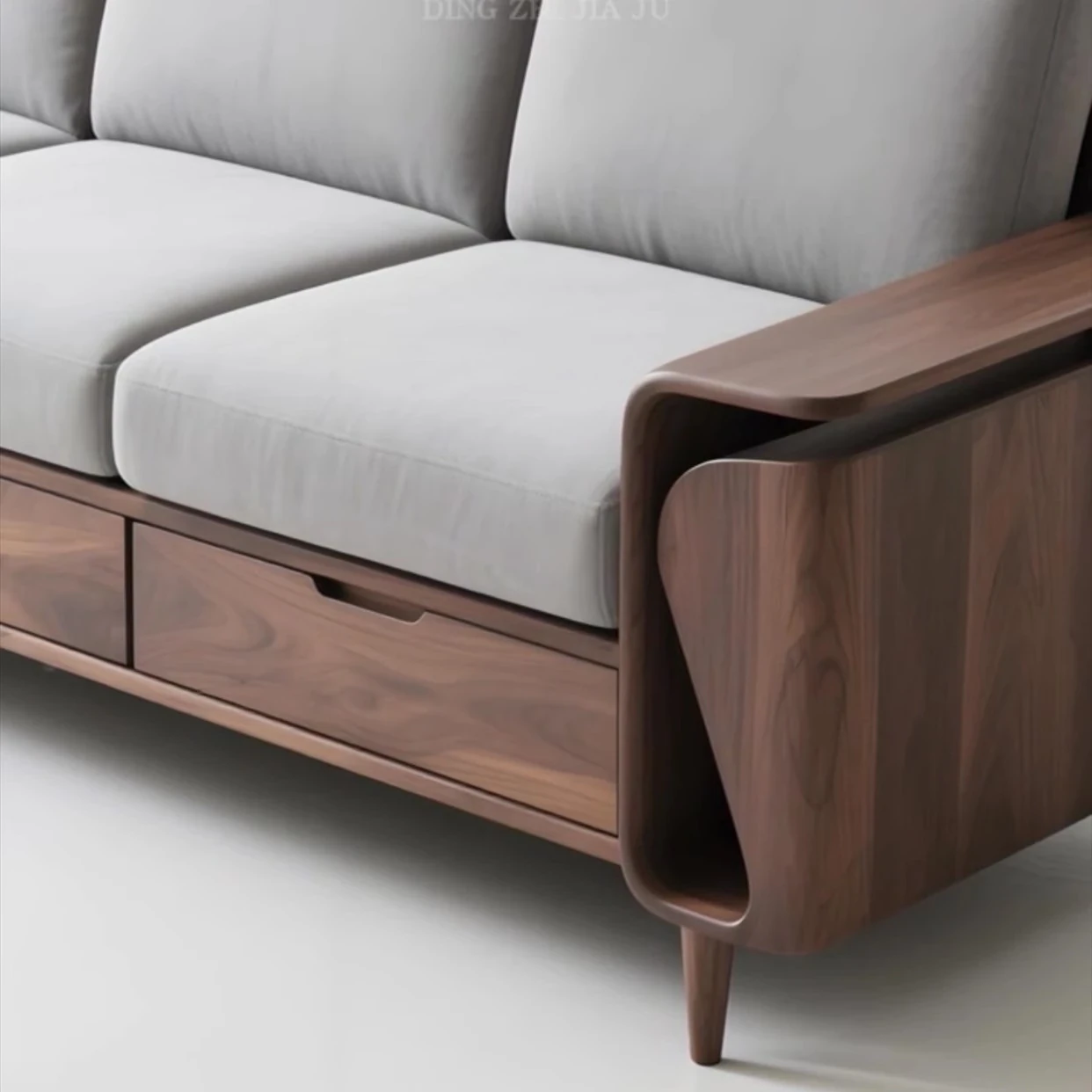 2025 New Elegant Minimalist Song Dynasty Style Black Walnut Solid Wood Sofa - Space-Saving Storage Sofa for Small Living Rooms