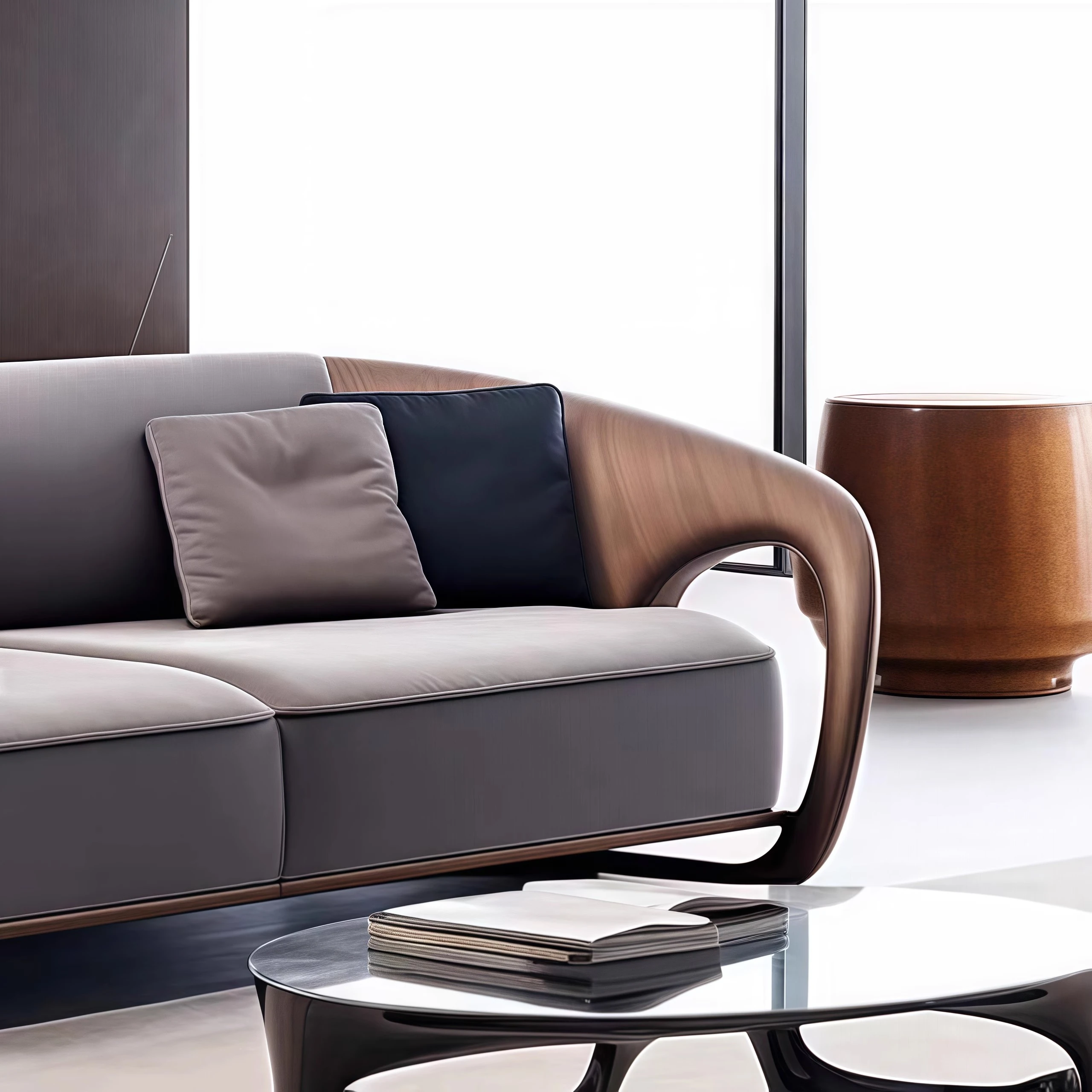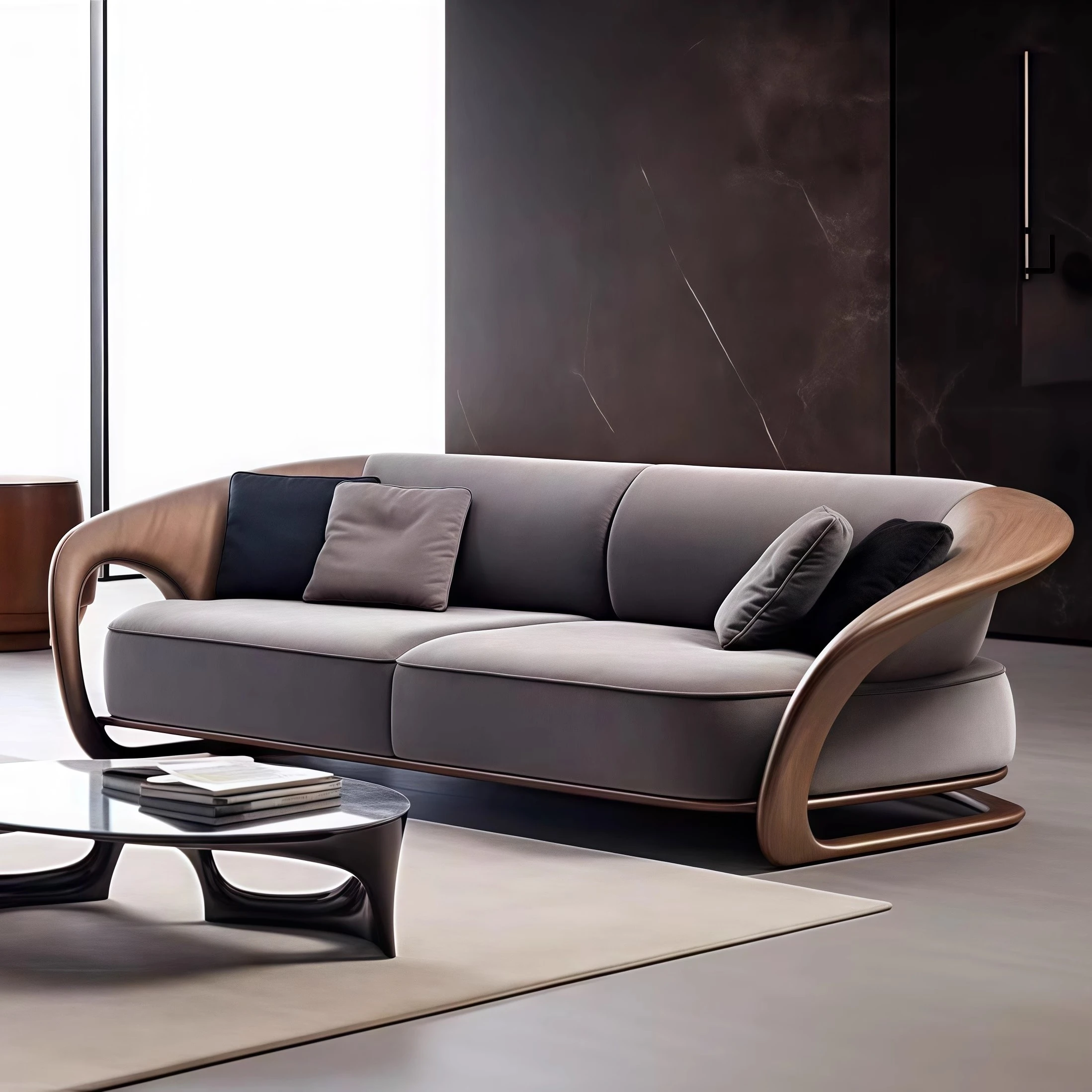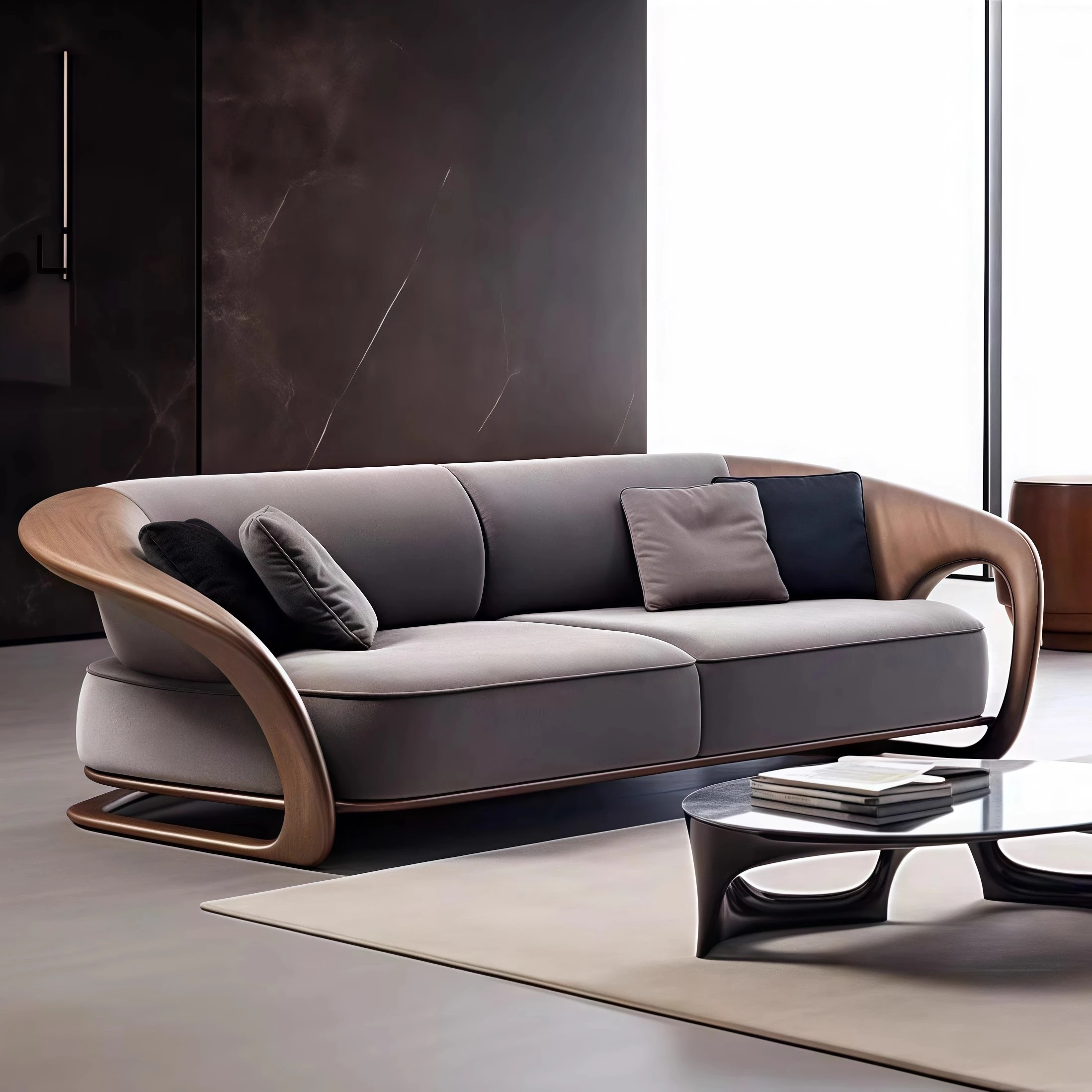 2025 New Modern Minimalist North American Black Walnut Solid Wood Sofa - Stylish Ribbon Design for Small Spaces, Perfect for Contemporary Living Rooms