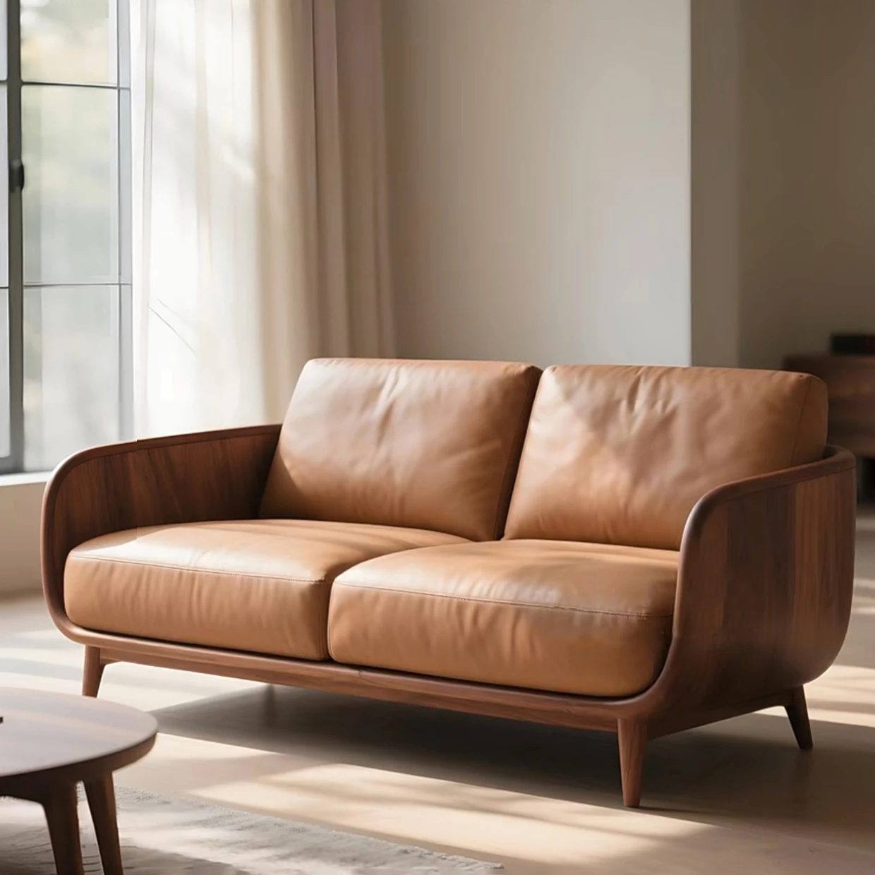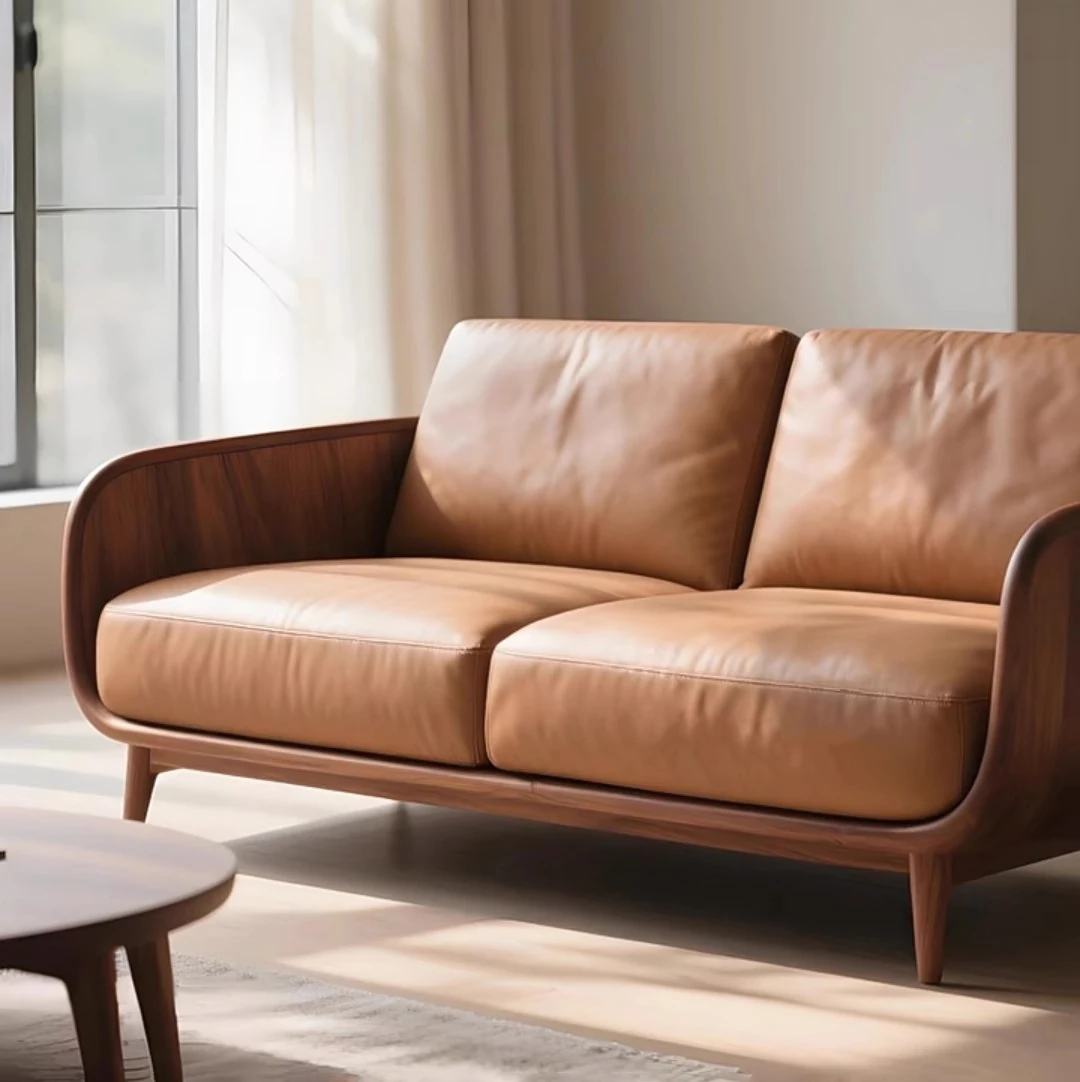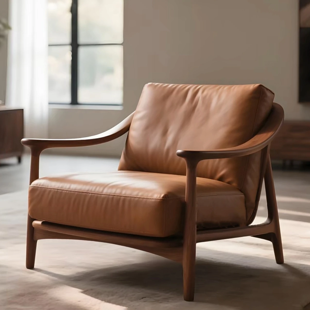 2025 New Style Solid Wood Leather Sofa - Single Seat High-End New Chinese Design Living Room Sofa in North American Black Walnut