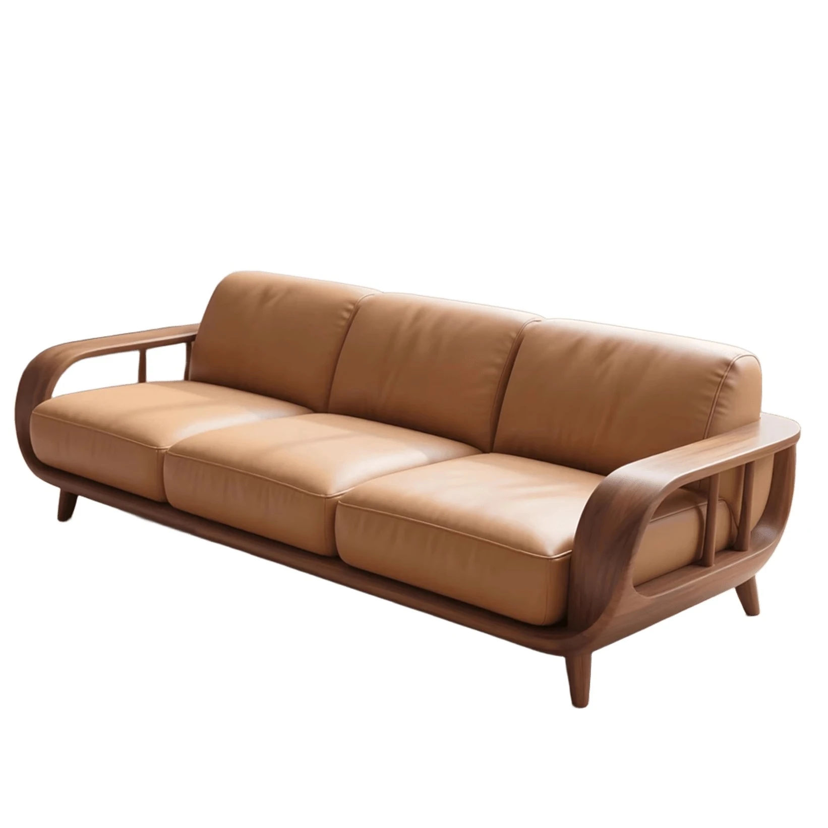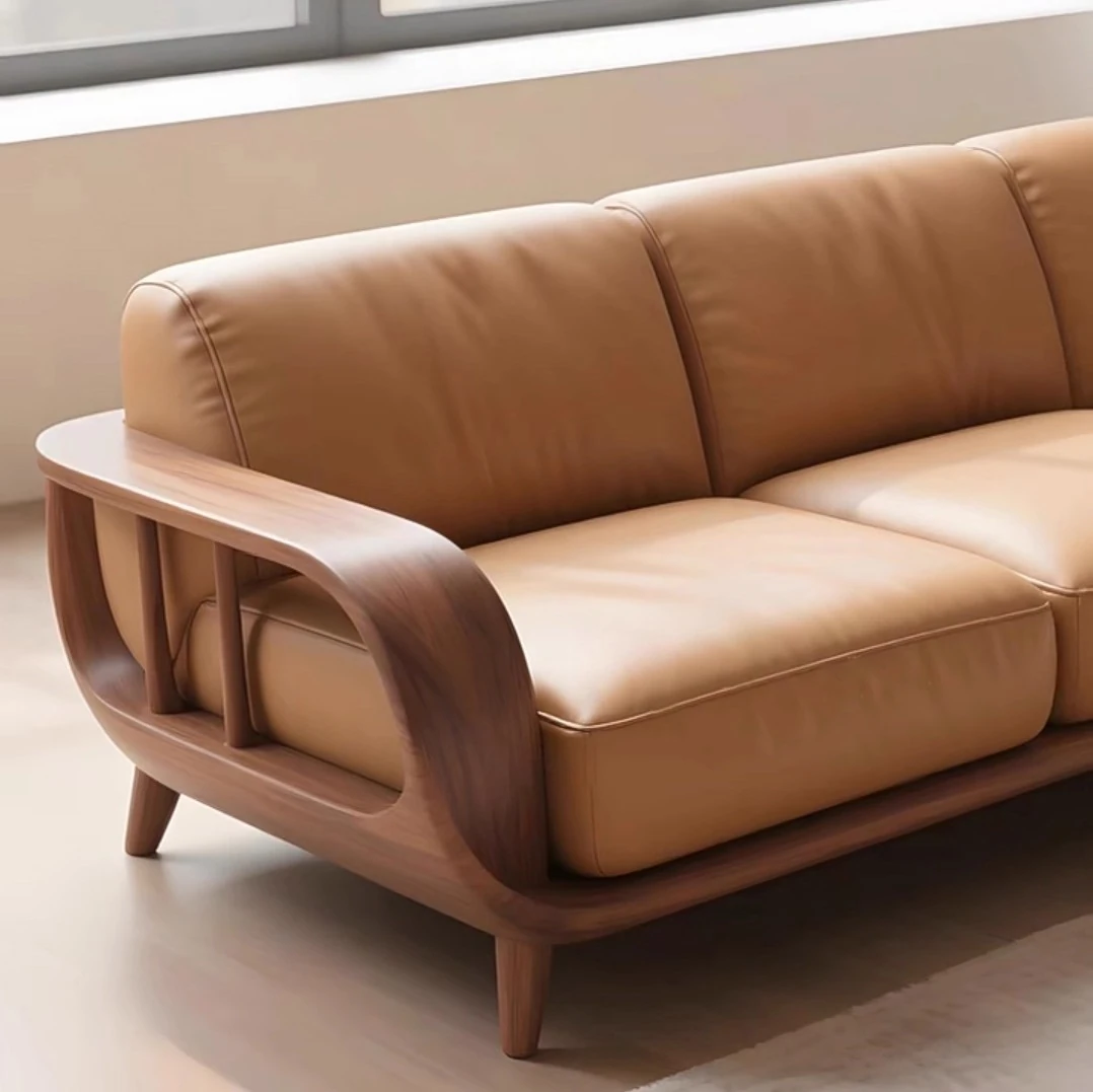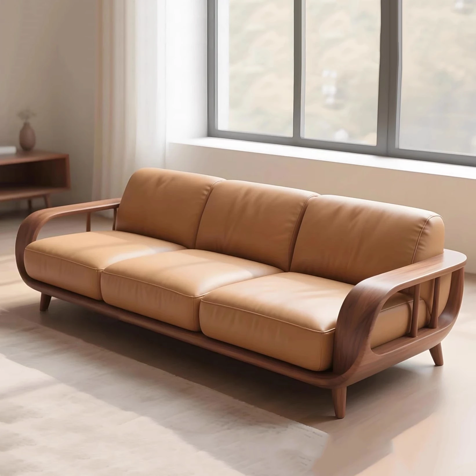 2025 New Style Solid Wood Leather Sofa - Single Seat High-End New Chinese Design Living Room Sofa in North American Black Walnut