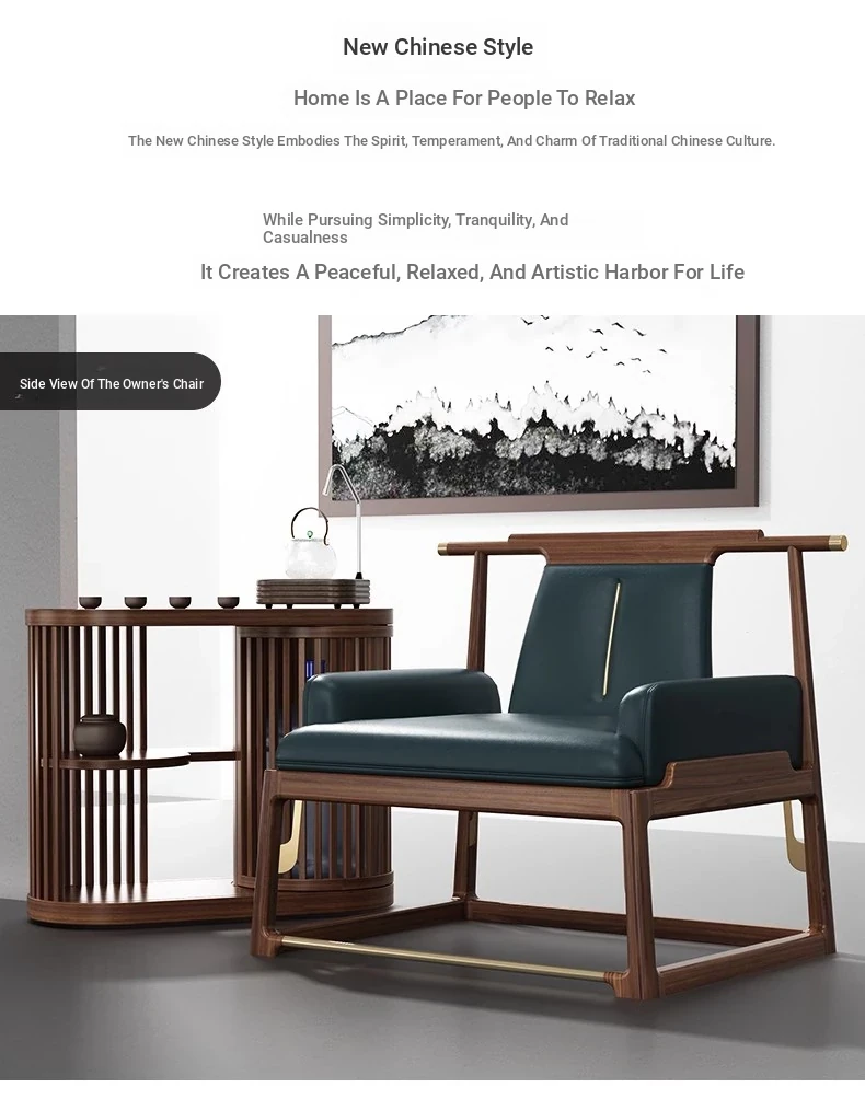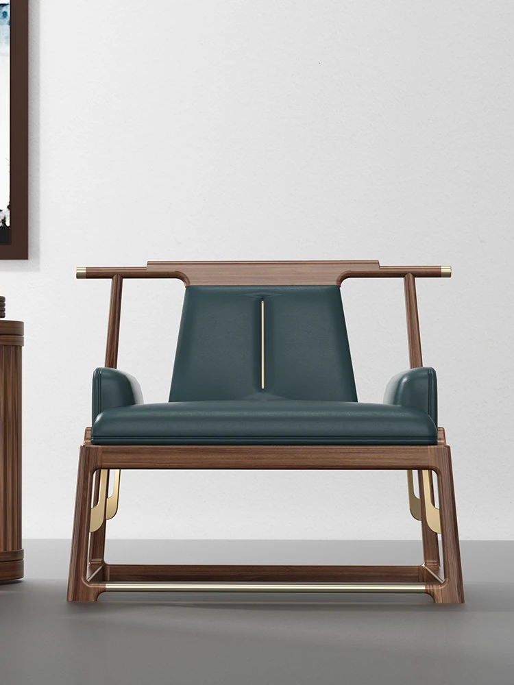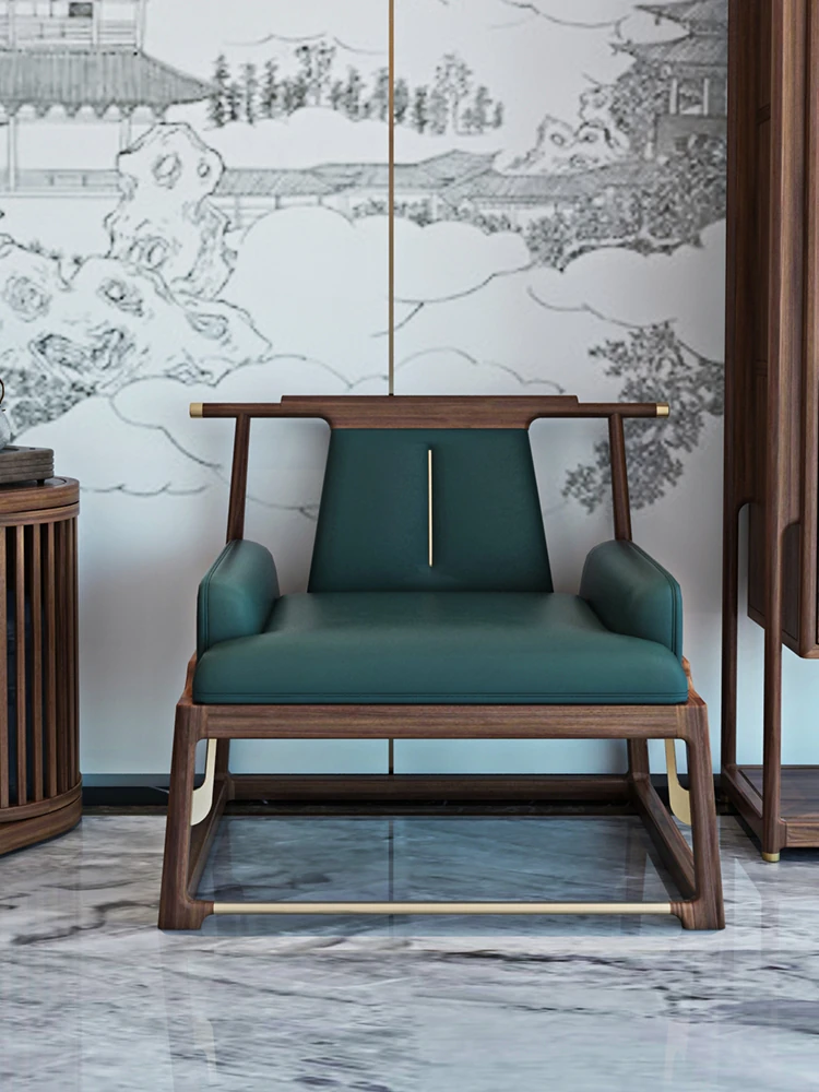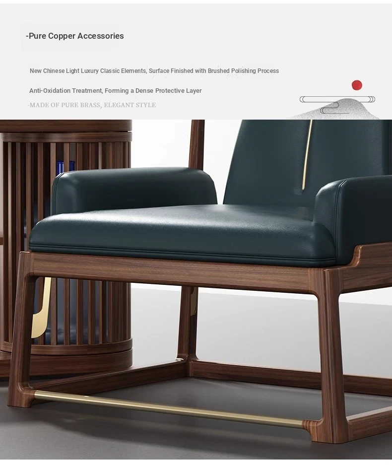 Elegant New Chinese Style Black Walnut Office Chair – Solid Wood Master's Chair with Comfortable Long-Seat Design, Perfect for Tea Ceremonies and Executive Spaces.
