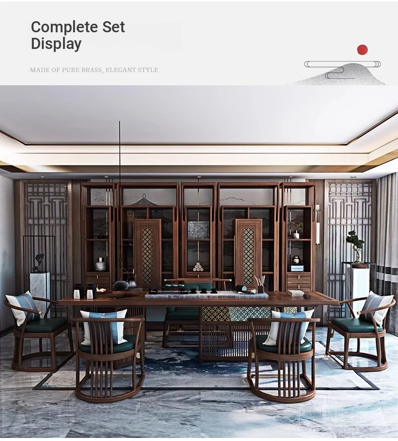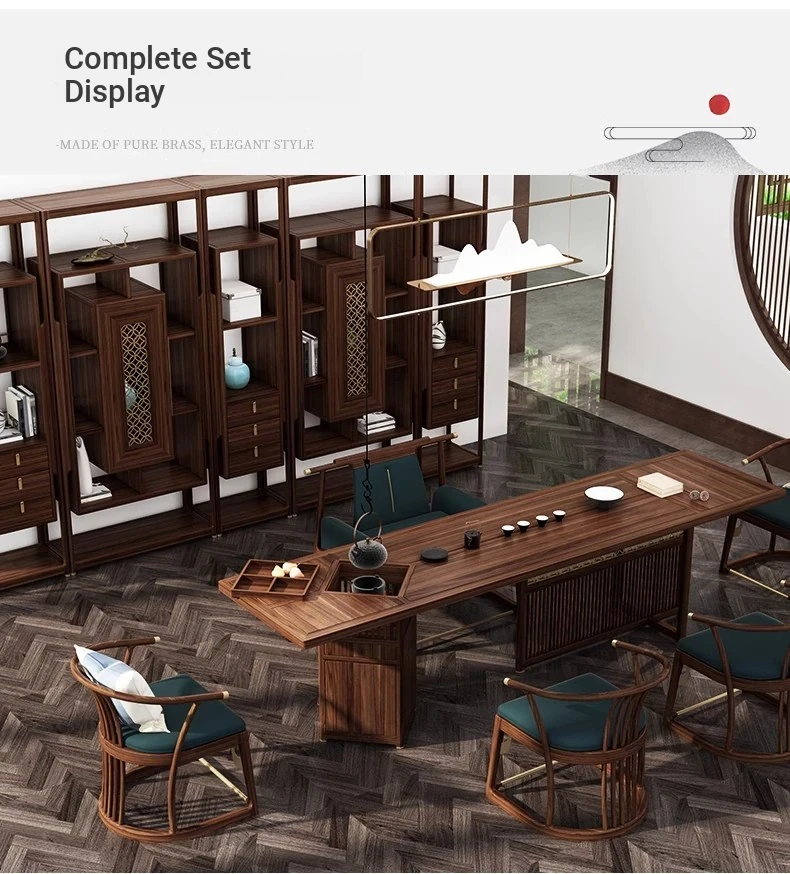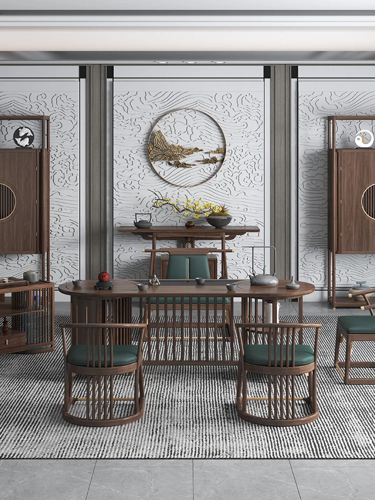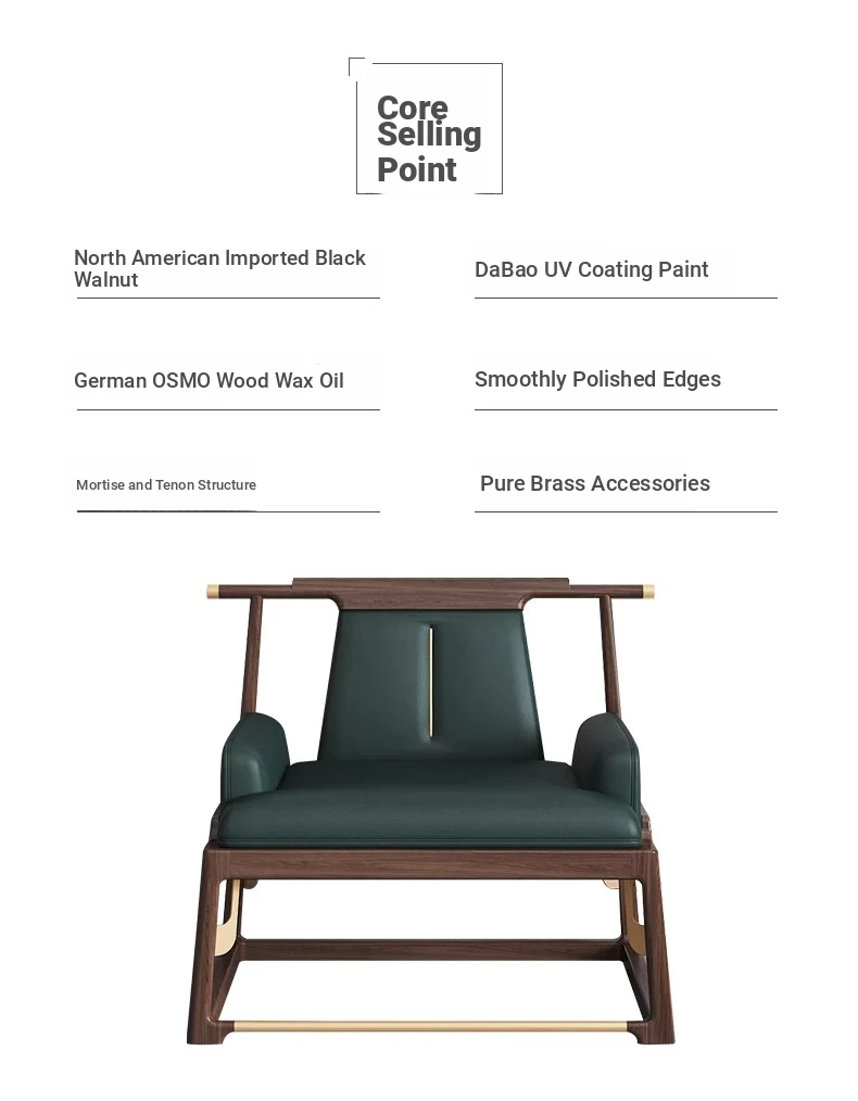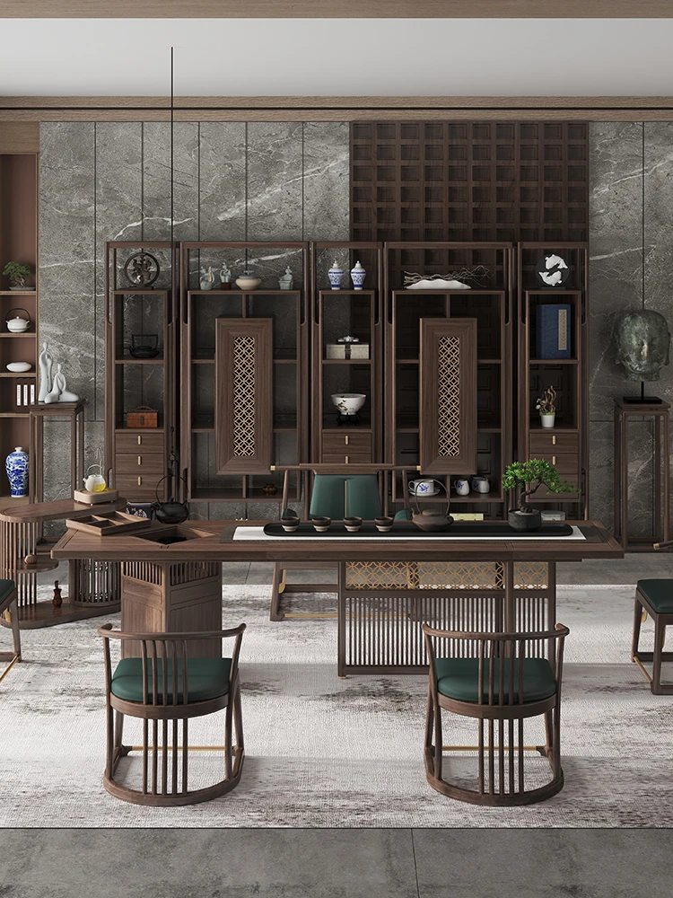 Elegant New Chinese Style Black Walnut Office Chair – Solid Wood Master's Chair with Comfortable Long-Seat Design, Perfect for Tea Ceremonies and Executive Spaces.