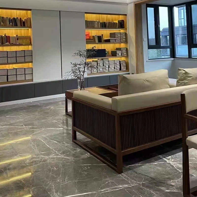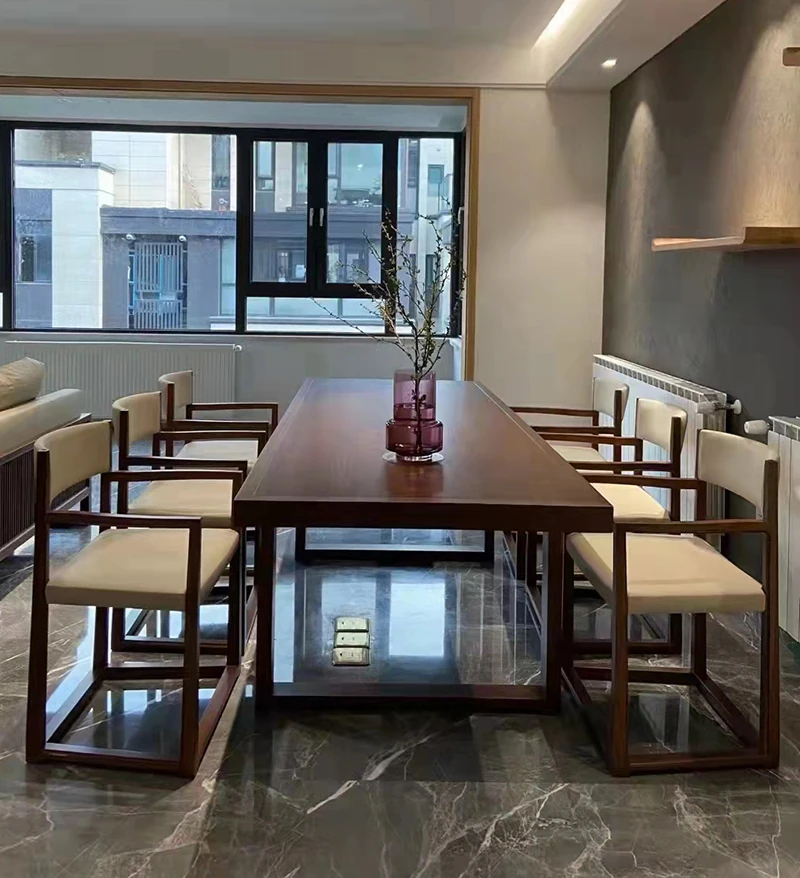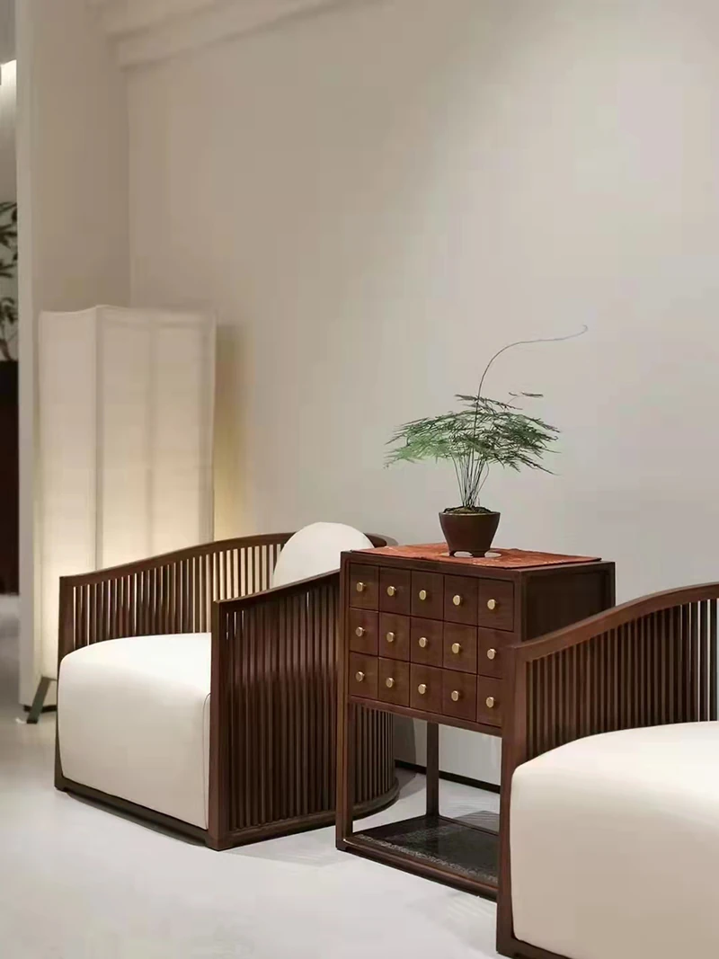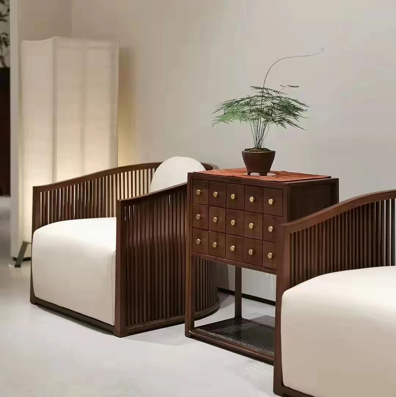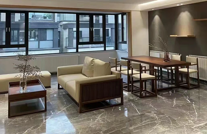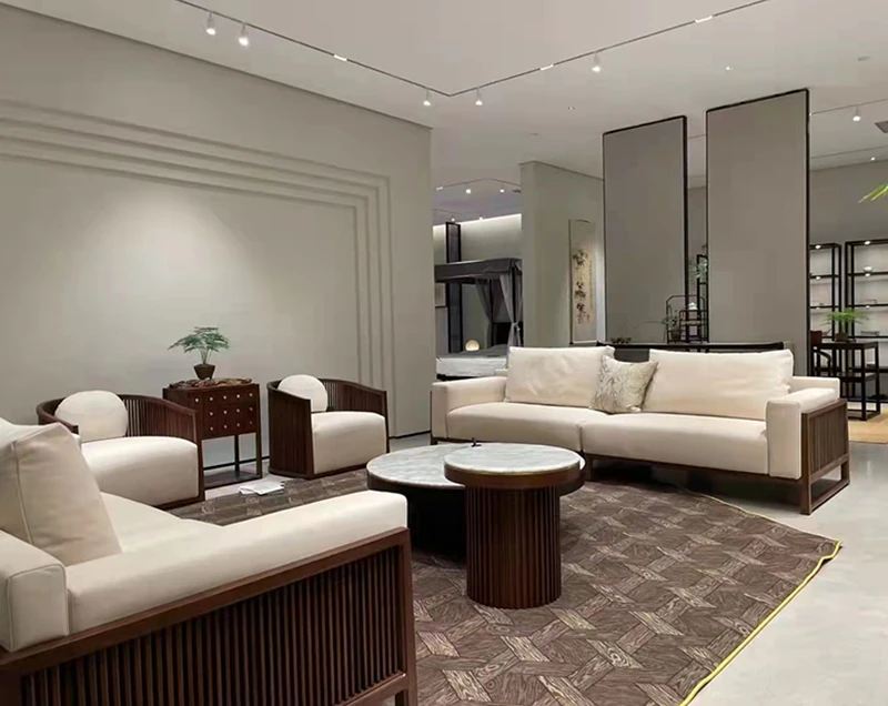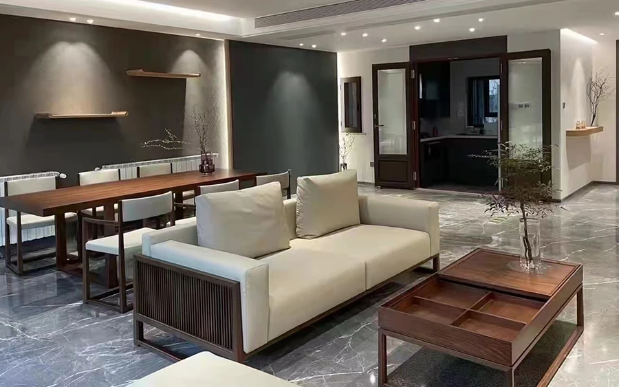 Modern Chinese Solid Wood Sofa Set for Small to Large Living Rooms – Minimalist Design in Black Walnut with Genuine Leather, Perfect for Homes and Hotels