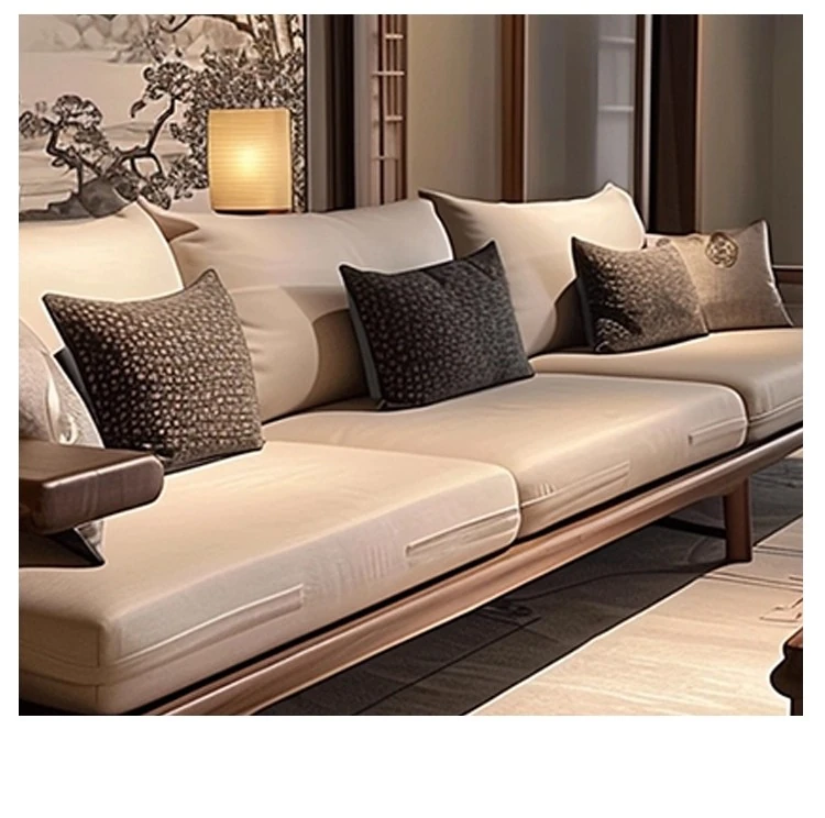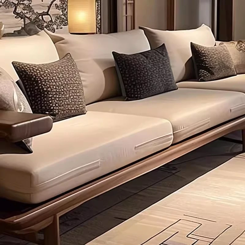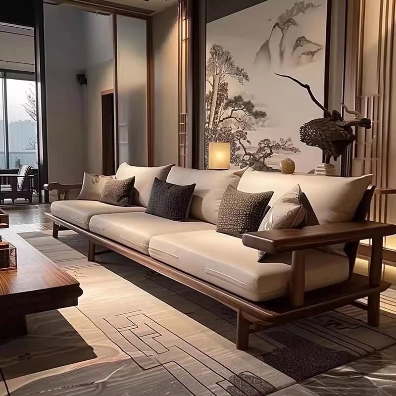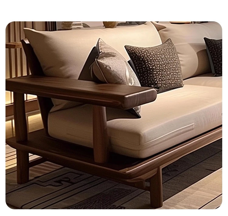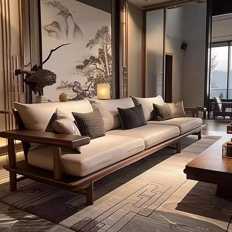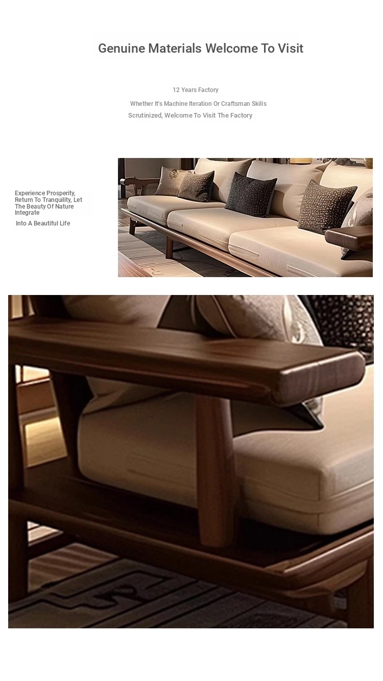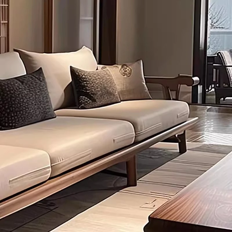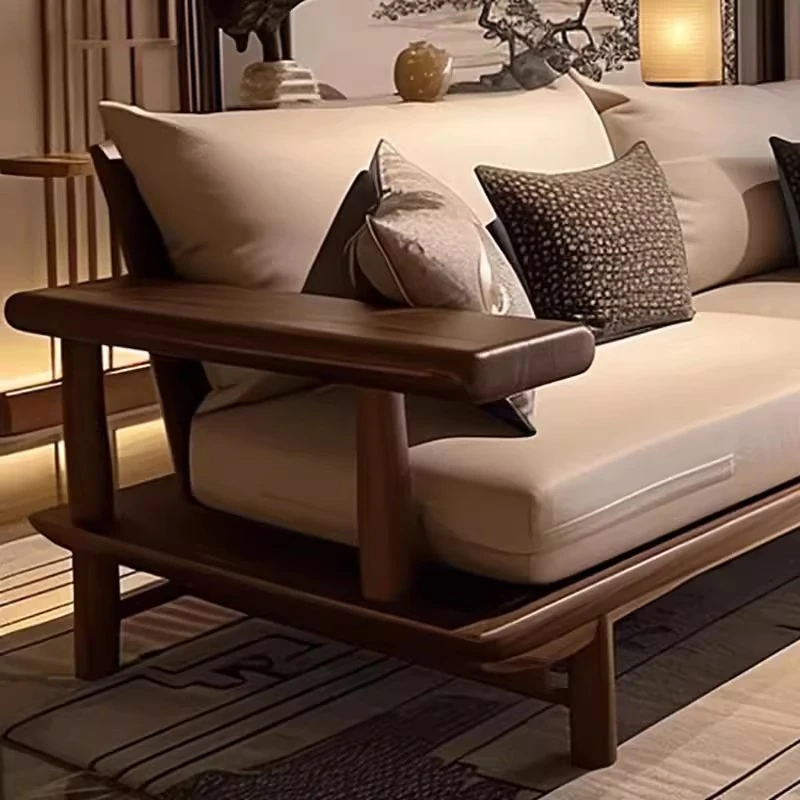 Premium Zen-inspired Solid Black Walnut Sofa - 2025 New Model for Modern Chinese-style Living Rooms, Perfect for Small Spaces.