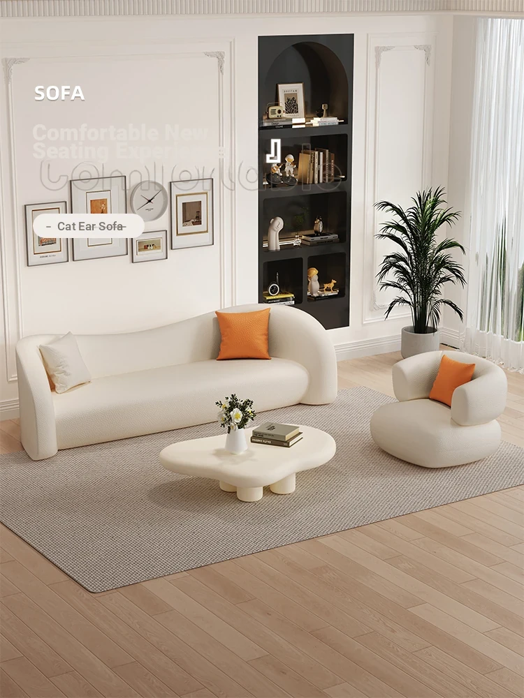Modern Cream-Colored Cat Scratch Sofa for Small Living Rooms - Trendy Reception Sofa for Home, Beauty Salons, and Clothing Stores