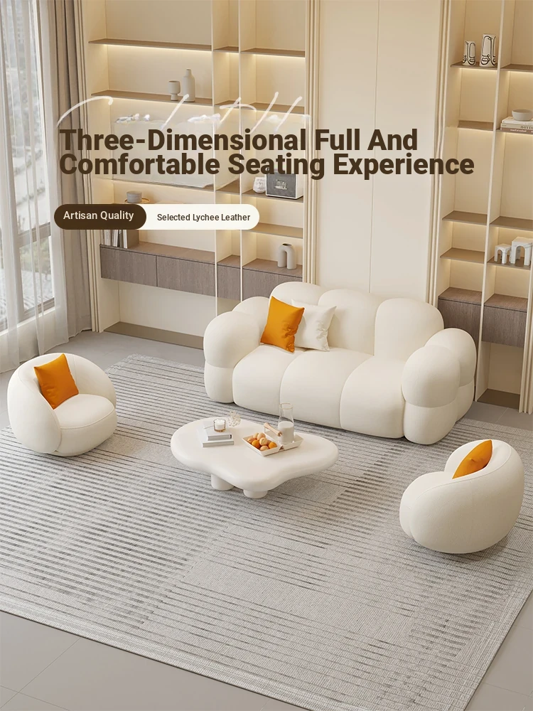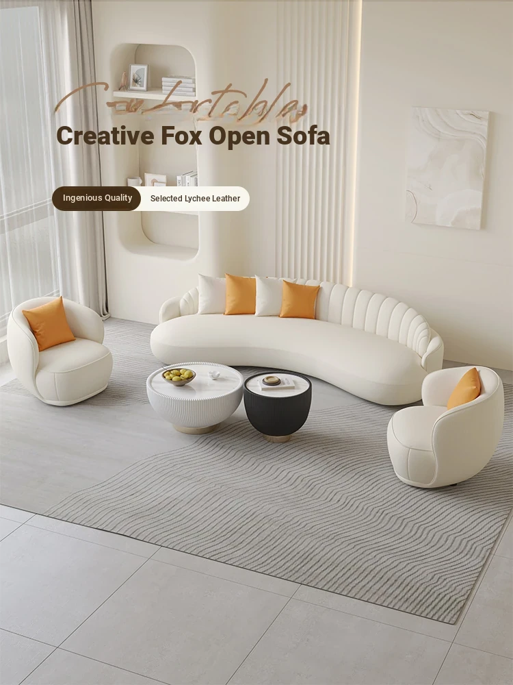 Modern Curved Leather Sofa for Small Living Rooms - Chic and Luxurious Reception Area Seating for Fashion Stores and Beauty Salons