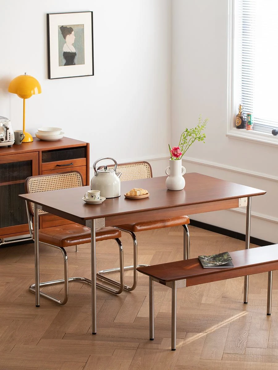 Cantaia | Vintage Solid Wood Dining Table for Small Spaces - Nordic Style, Trendy Rectangular Stainless Steel Rock Plate Table for Home Use