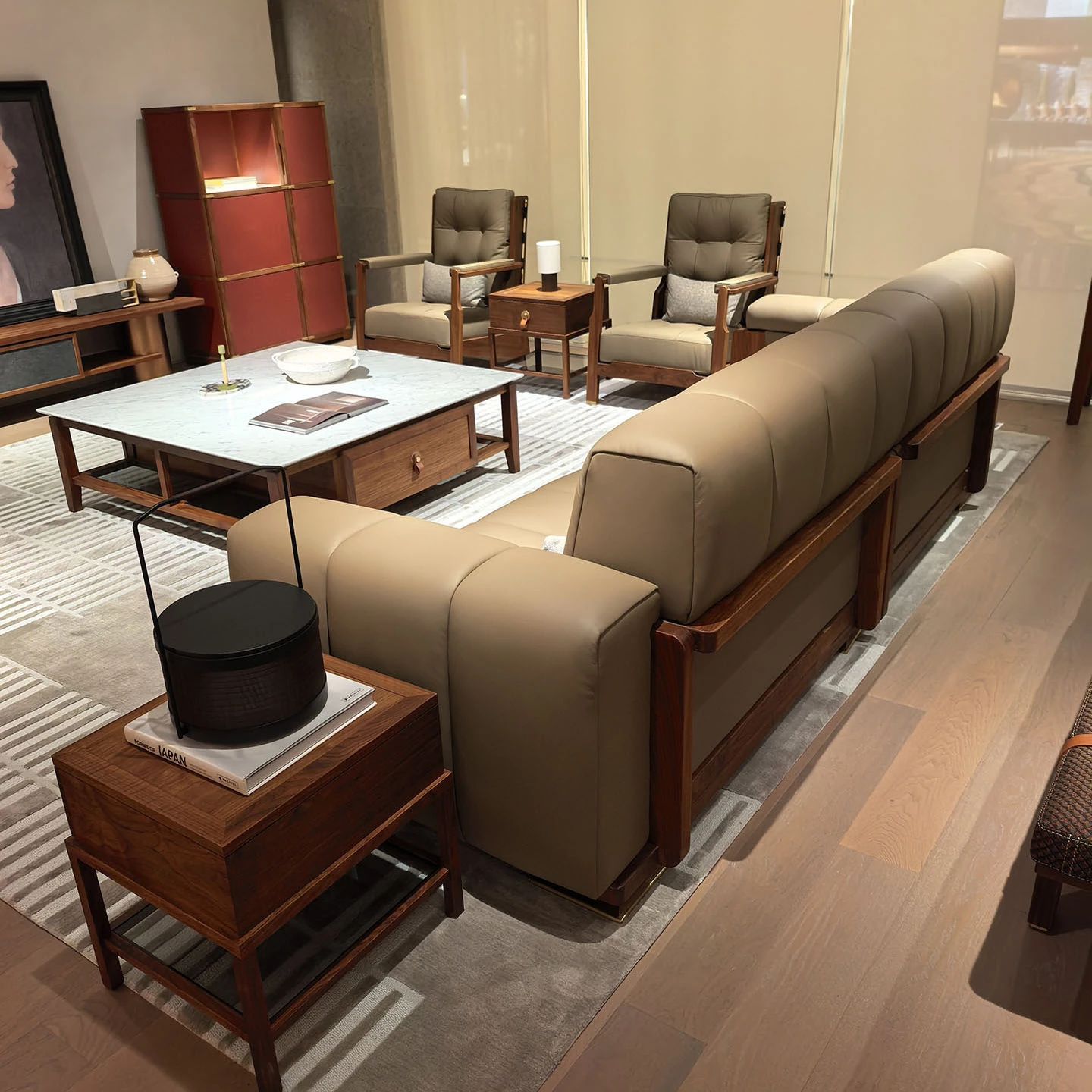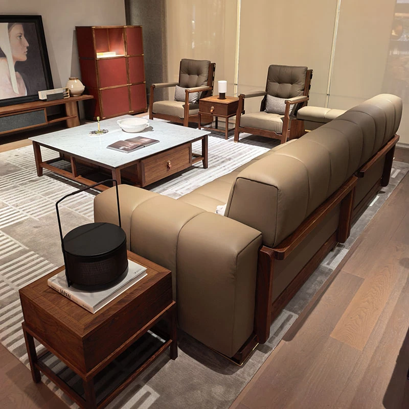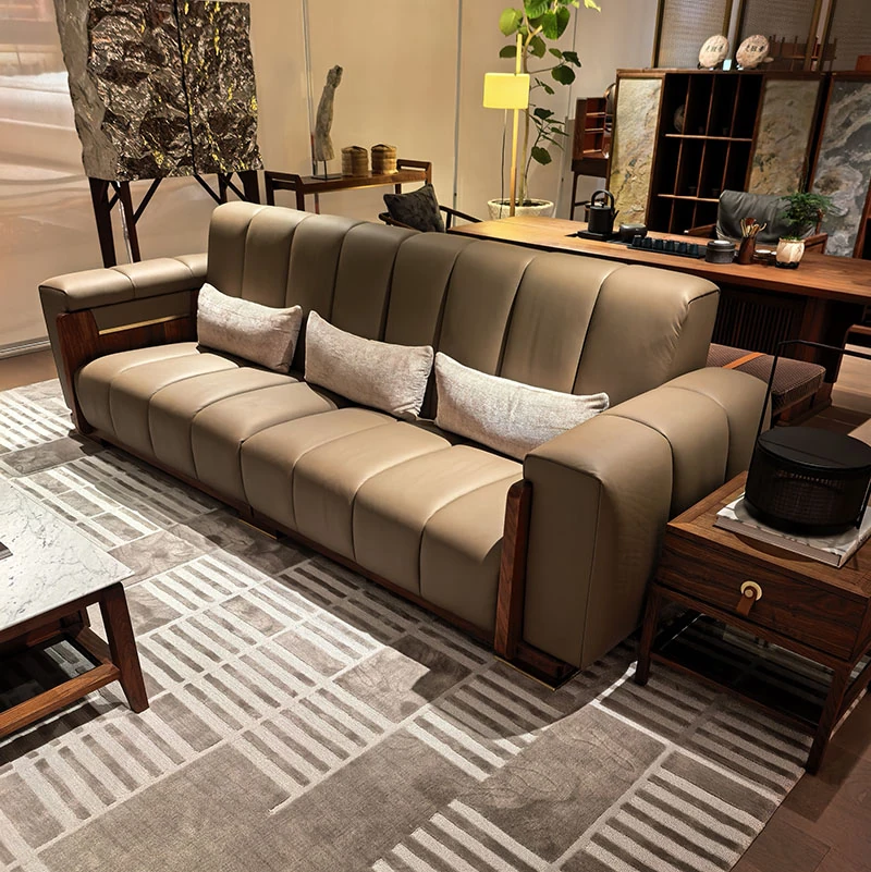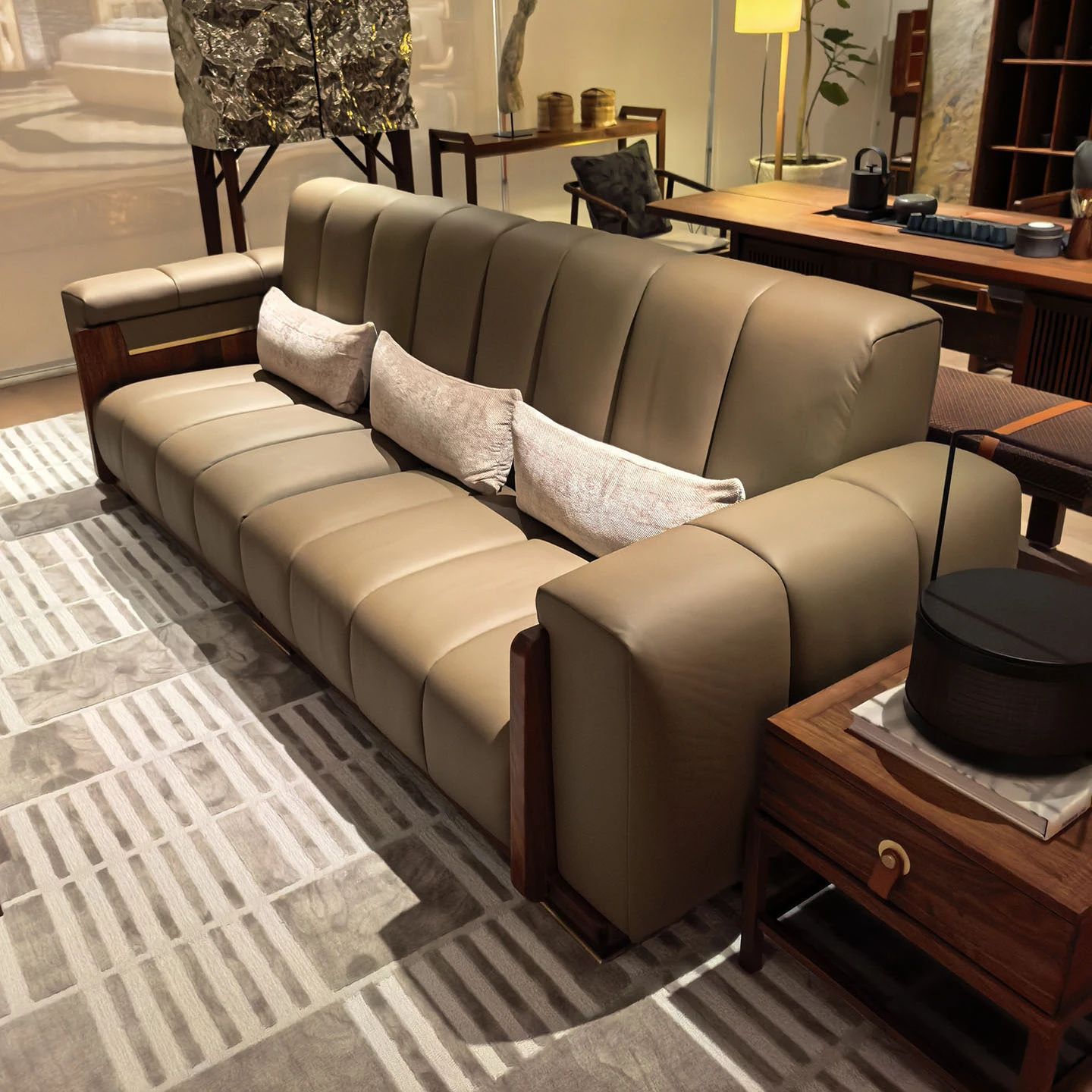 2025年新作!小户型向け北米黒胡桃木リビングソファー。スペースマスターの高級感溢れるストレートデザイン、真皮使用で贅沢な座り心地を実現!おしゃれな空間を演出します。