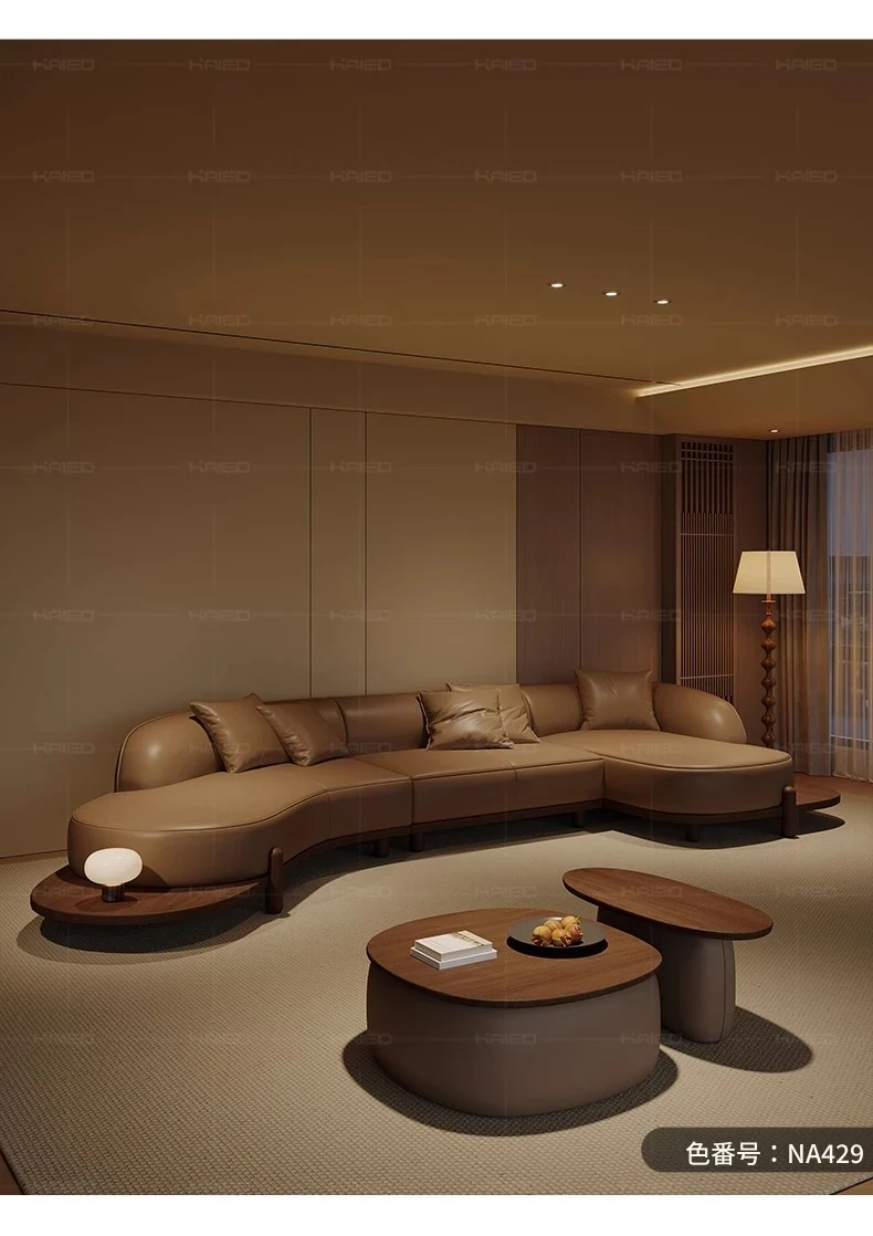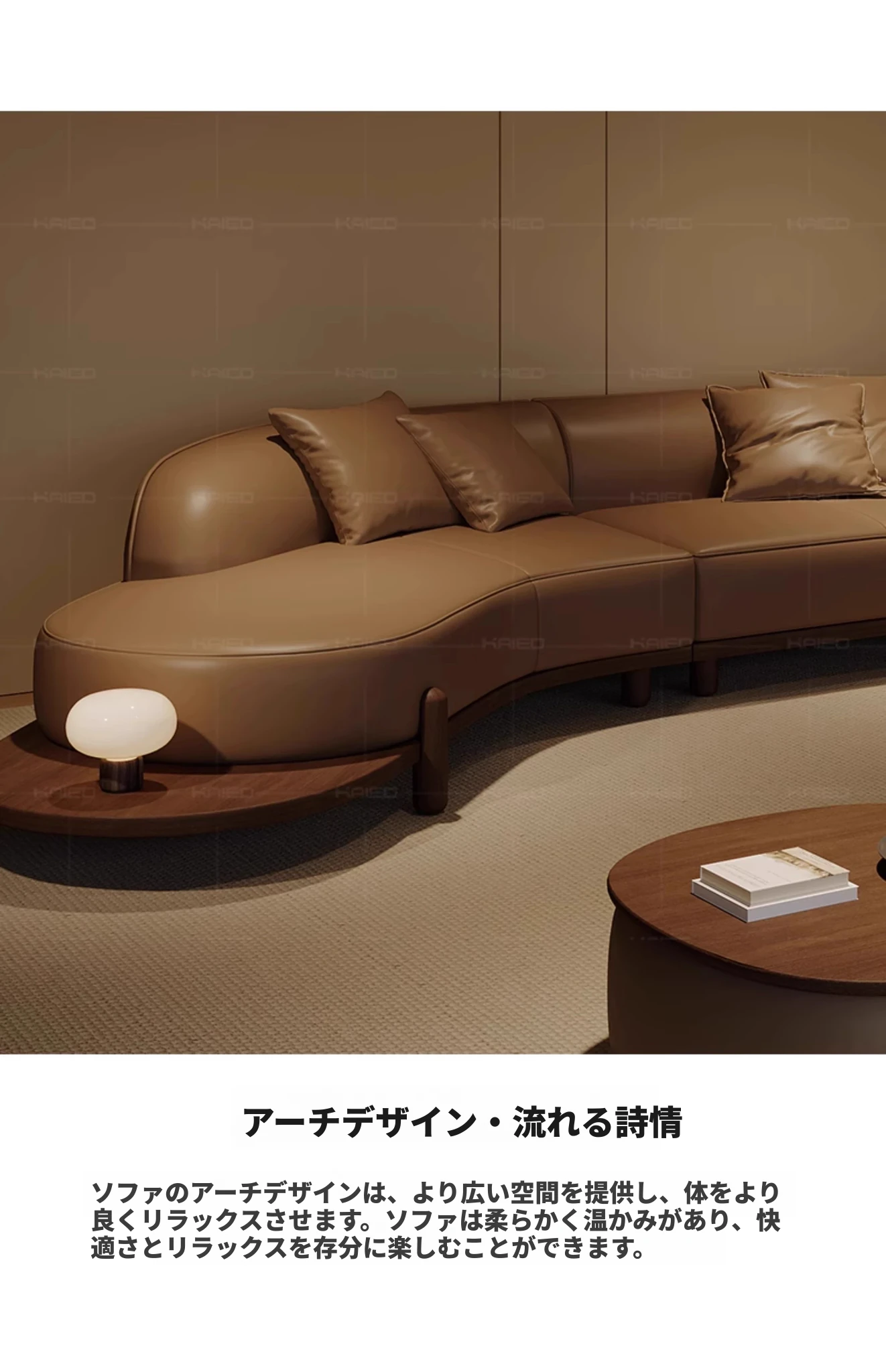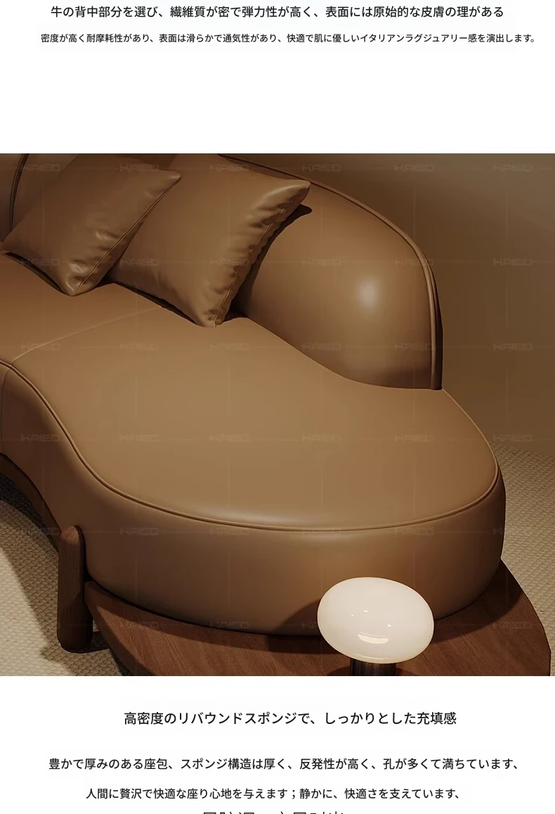 2025年新作!宋式美学・黒胡桃木ソファー。真皮使用のミニマルデザイン、月型カーブが特徴。小さなお部屋にもぴったりのスタイリッシュなリビングソファ!おしゃれで快適な空間を演出します。