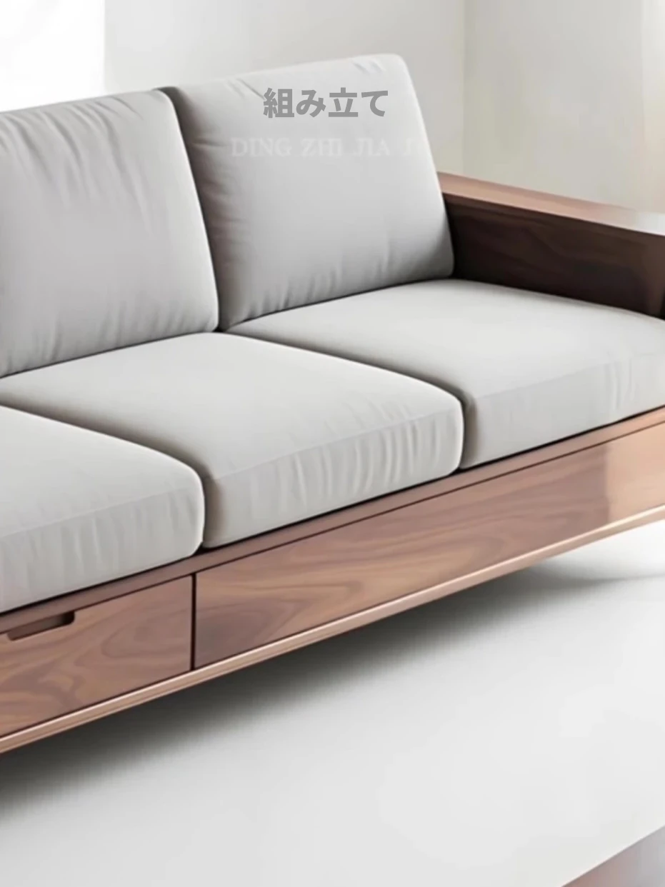 2025年新作!宋式中古風デザインのブラックウォールナット無垢材ソファ - コンパクトでスタイリッシュなリビングにぴったり、収納機能付きの軽奢ソファ!小さなお部屋でも大活躍!