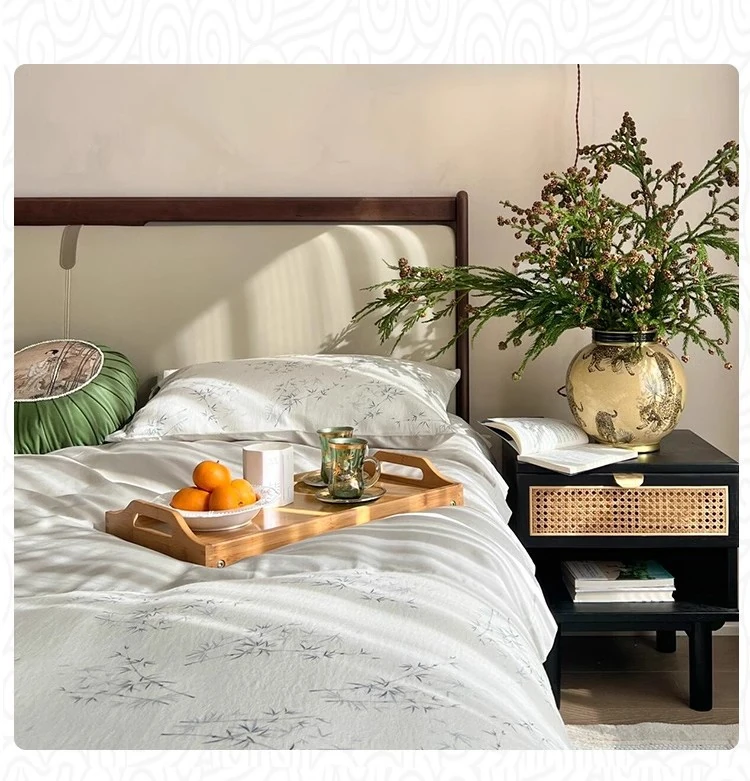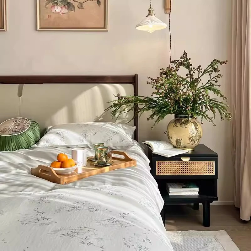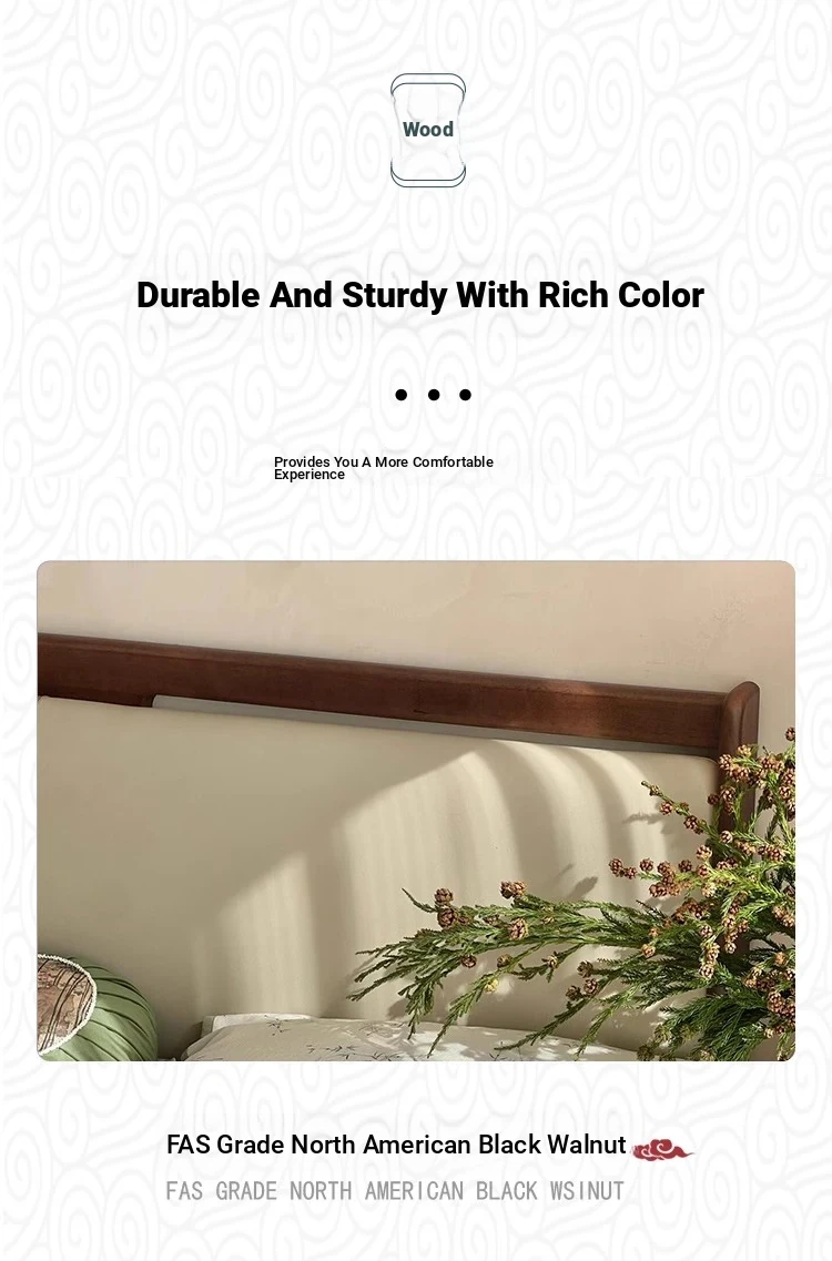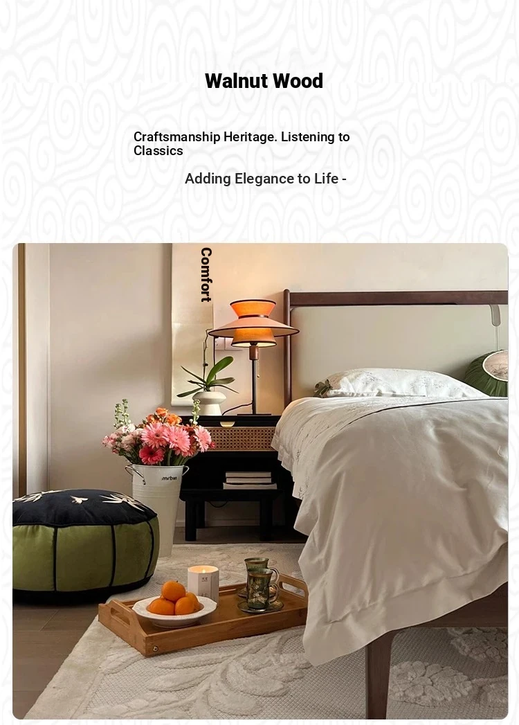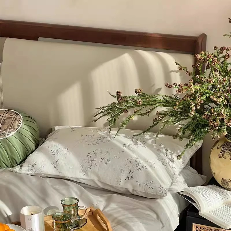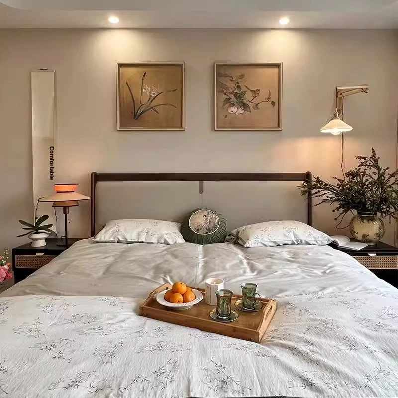 Elegant New Chinese Style Solid Wood Bed - French Vintage 1.8m King Size Black Walnut - Premium Hotel and Airbnb Furniture with Classic Aesthetic