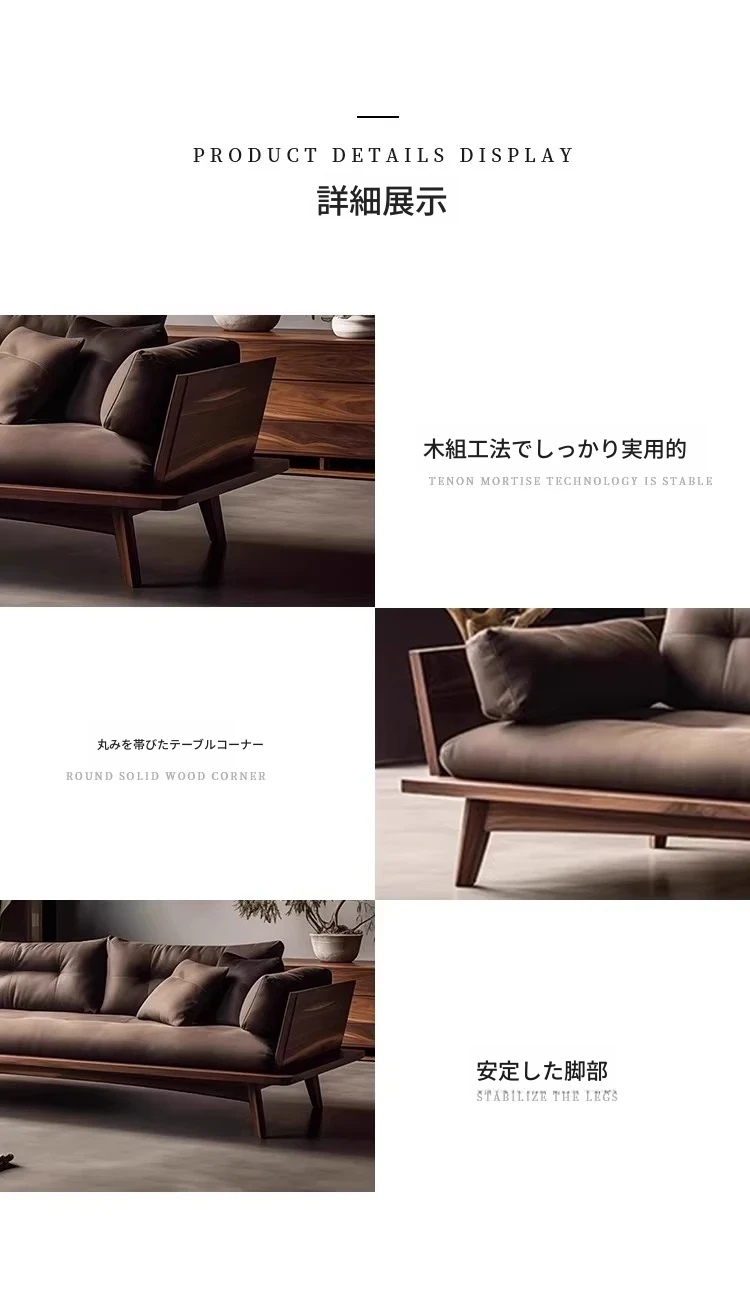 新中式のブラックウォルナット製リビングソファ、3〜4人用、小型住宅に最適!2025年新作、無垢材使用のストレートデザイン、贅沢な本革仕上げで、快適な座り心地を実現!
