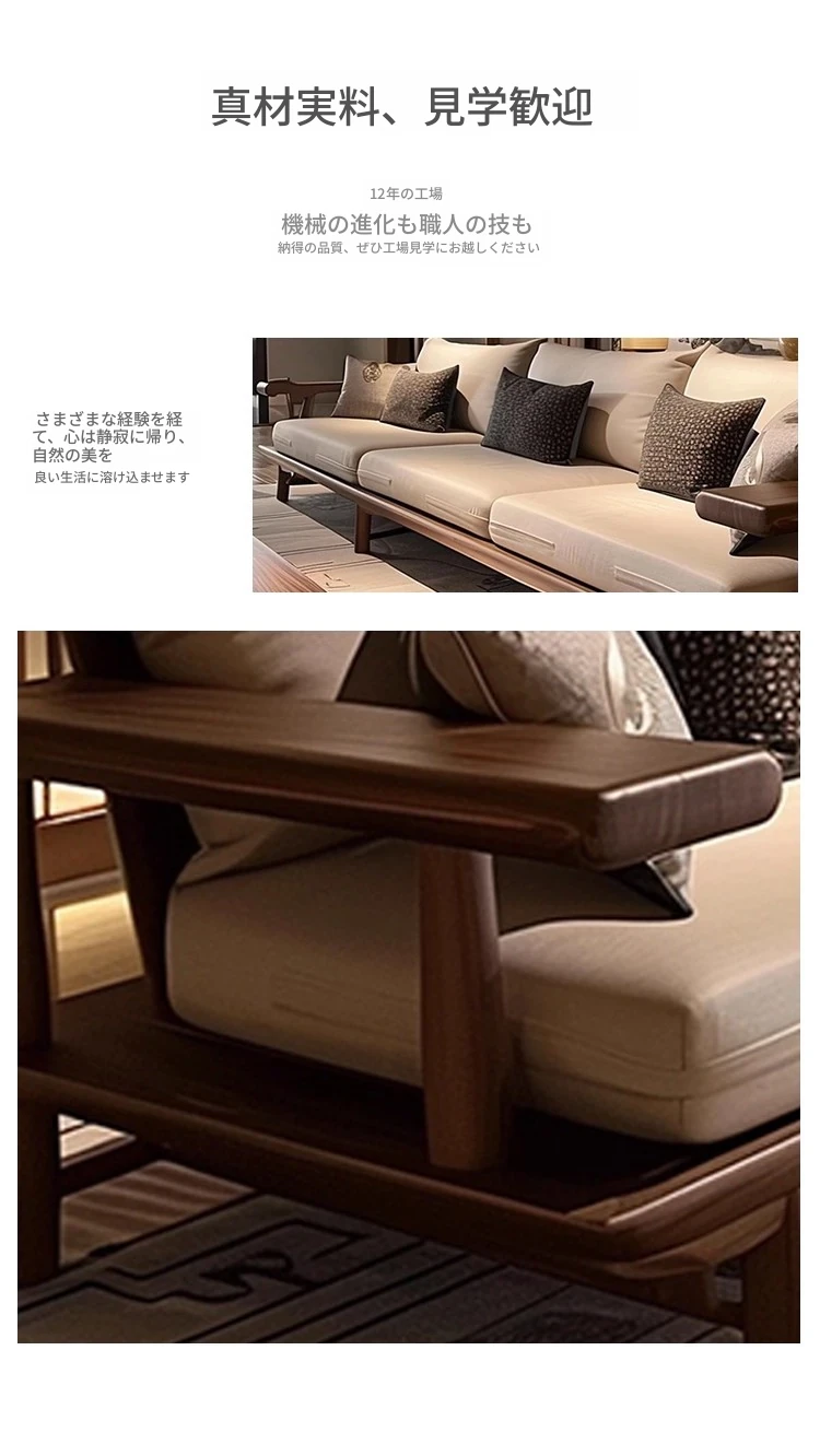 2025年新作!高級禅スタイルの北米ブラックウォールナット無垢材ソファ - 小型リビングに最適な新中式デザインで、直線的な美しさを引き立てる家具です。上質な空間を演出し、心安らぐひと時を提供します。
