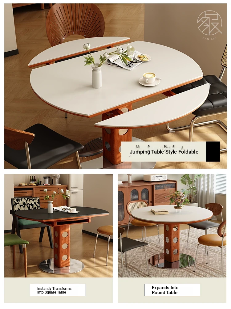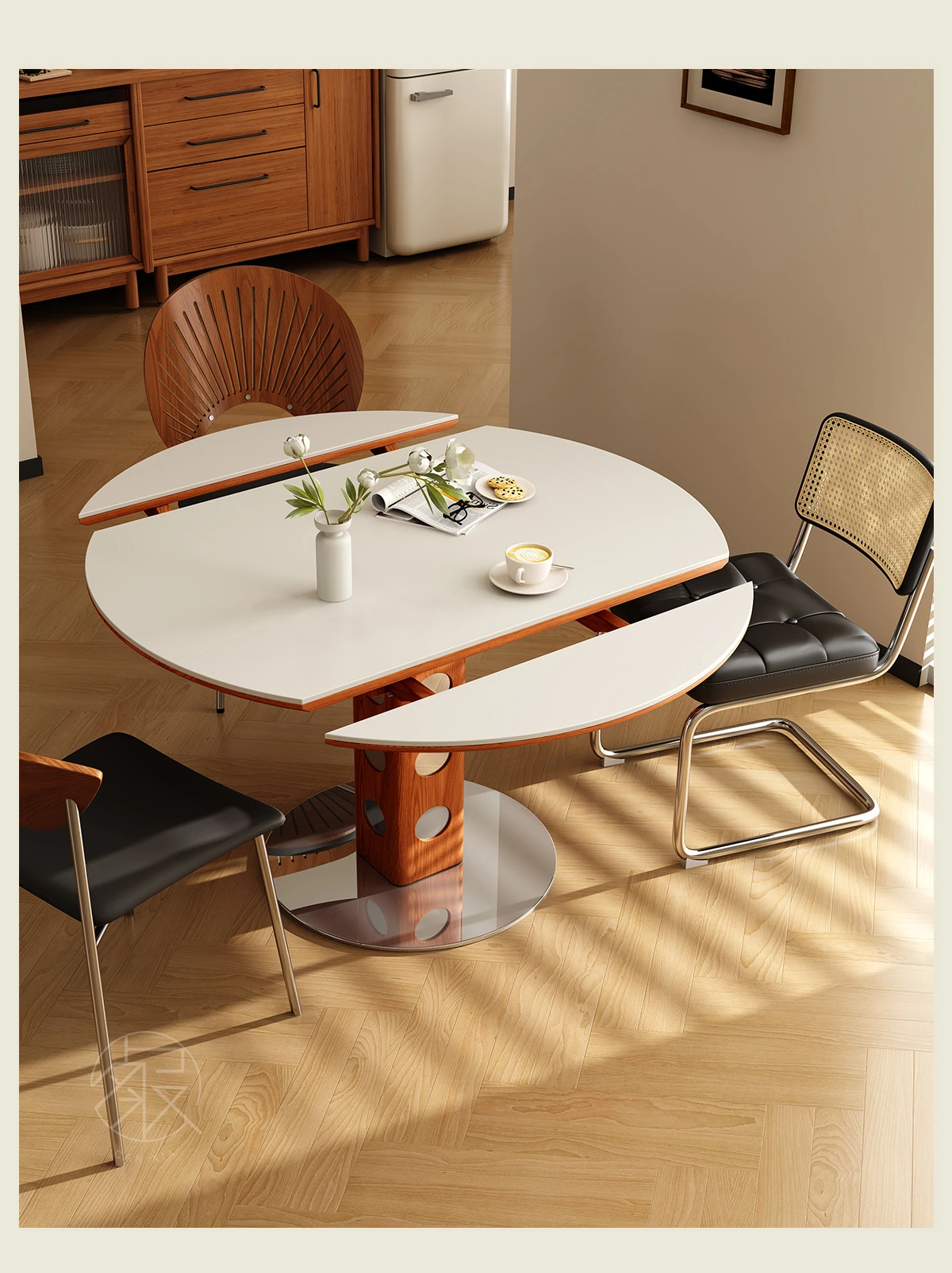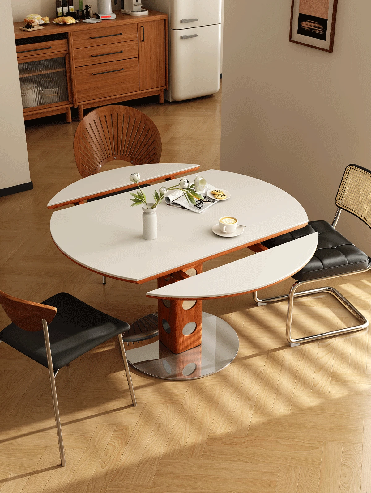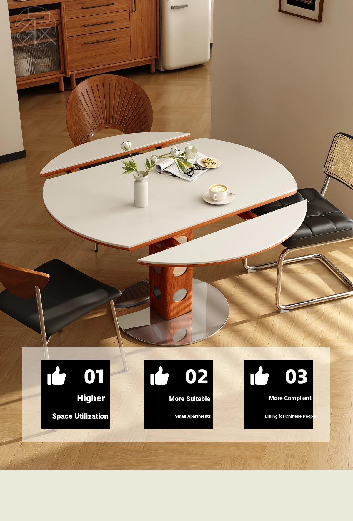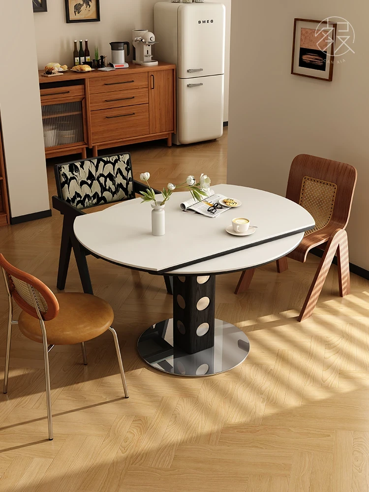 華やかなデザインのミニマリスト中型テーブル|家庭用・リビングに最適!バウハウススタイルの折りたたみ式ラウンドダイニングテーブル、小スペースにもぴったり!