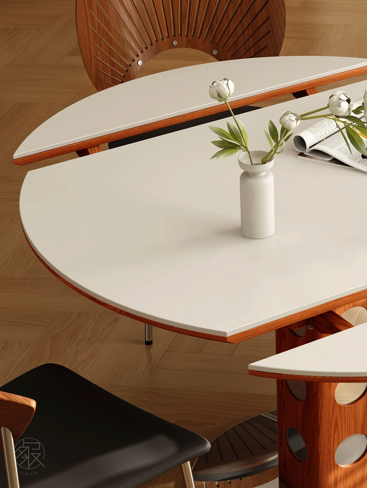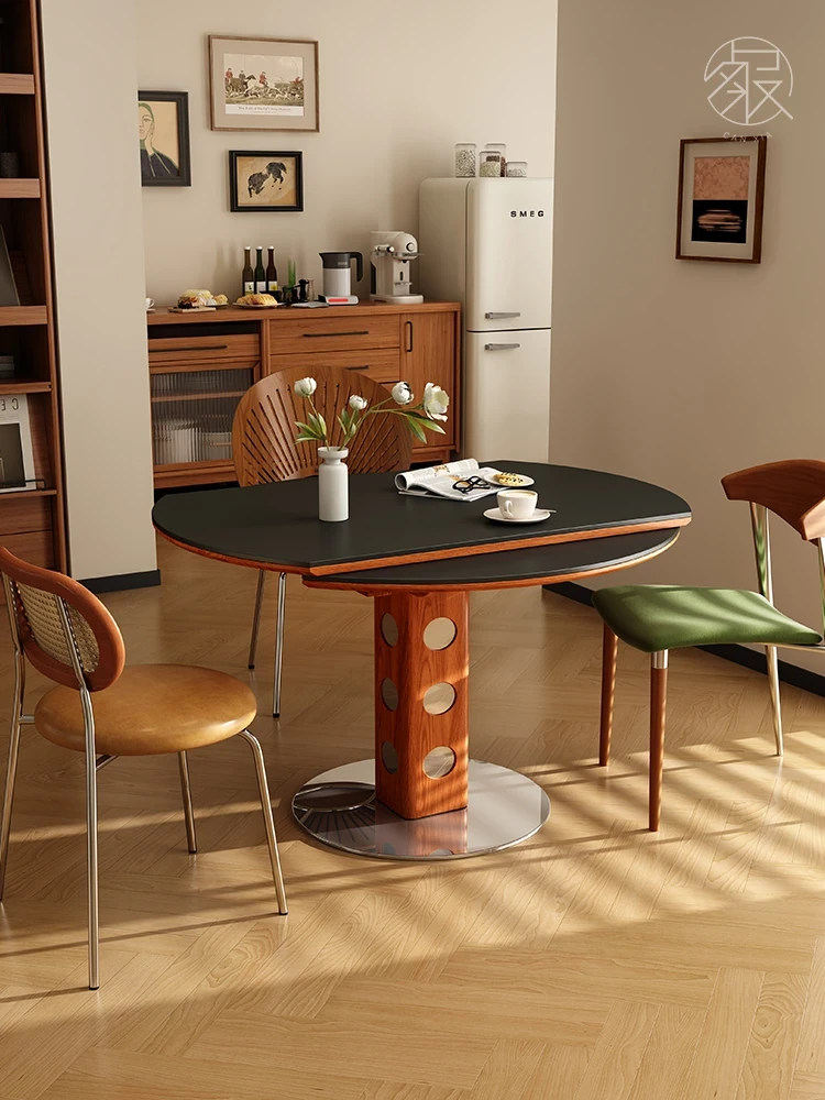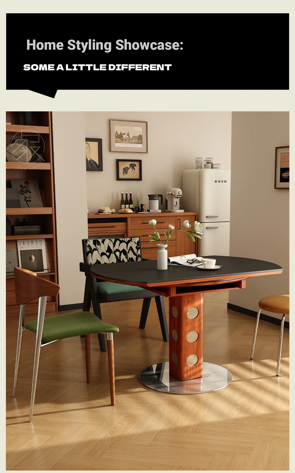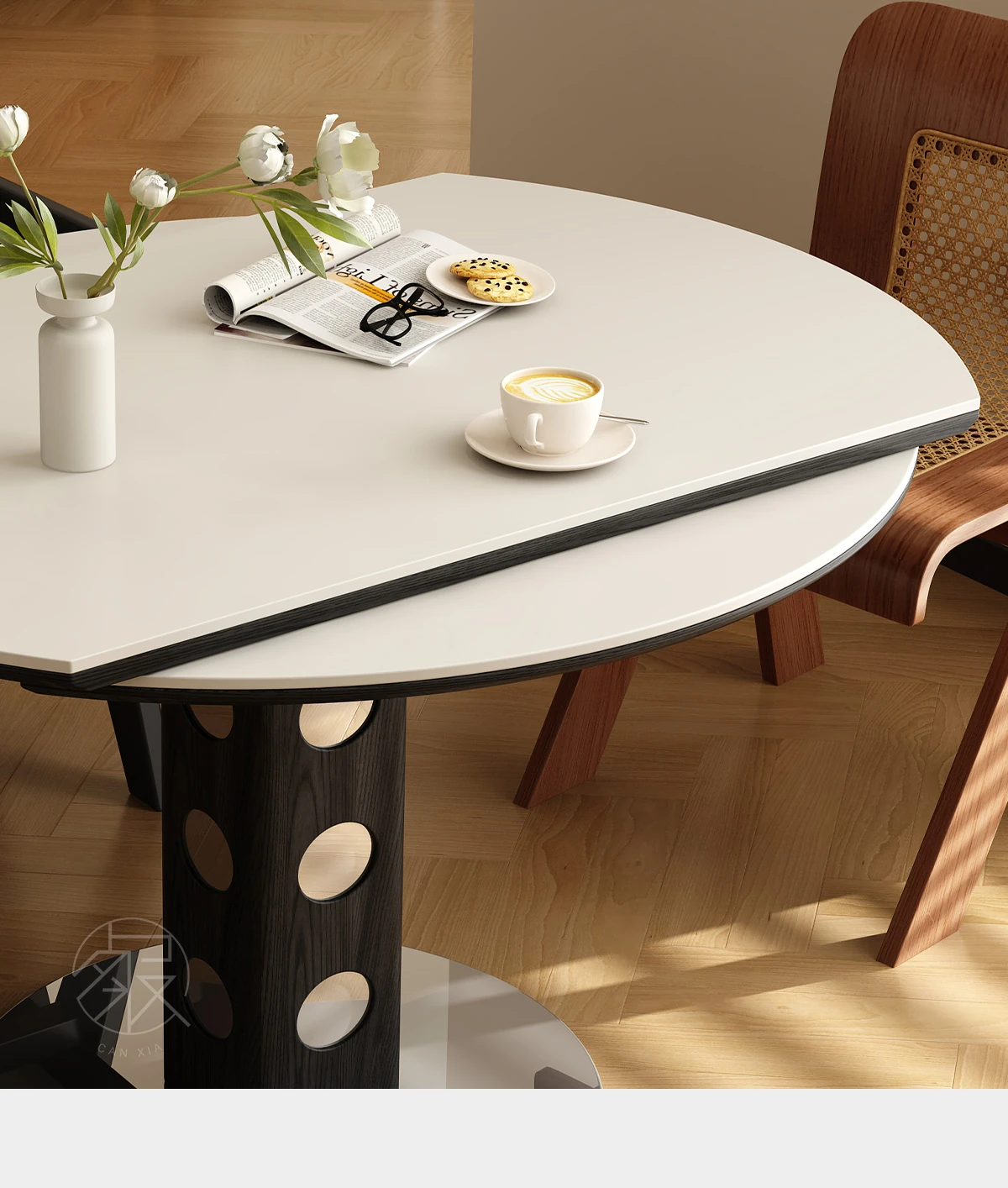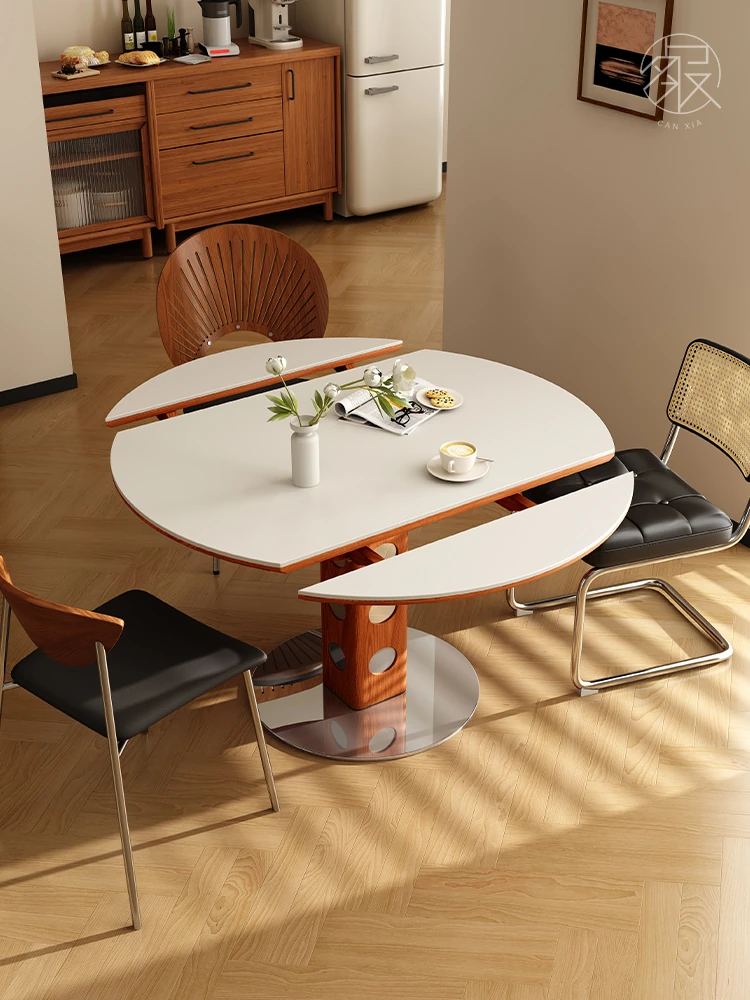 華やかなデザインのミニマリスト中型テーブル|家庭用・リビングに最適!バウハウススタイルの折りたたみ式ラウンドダイニングテーブル、小スペースにもぴったり!