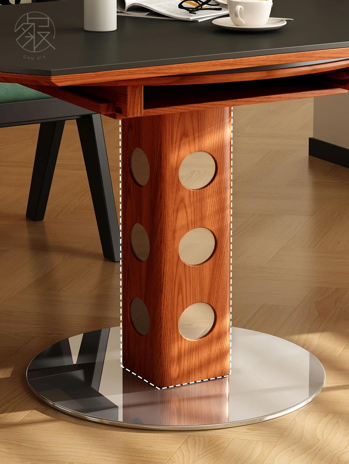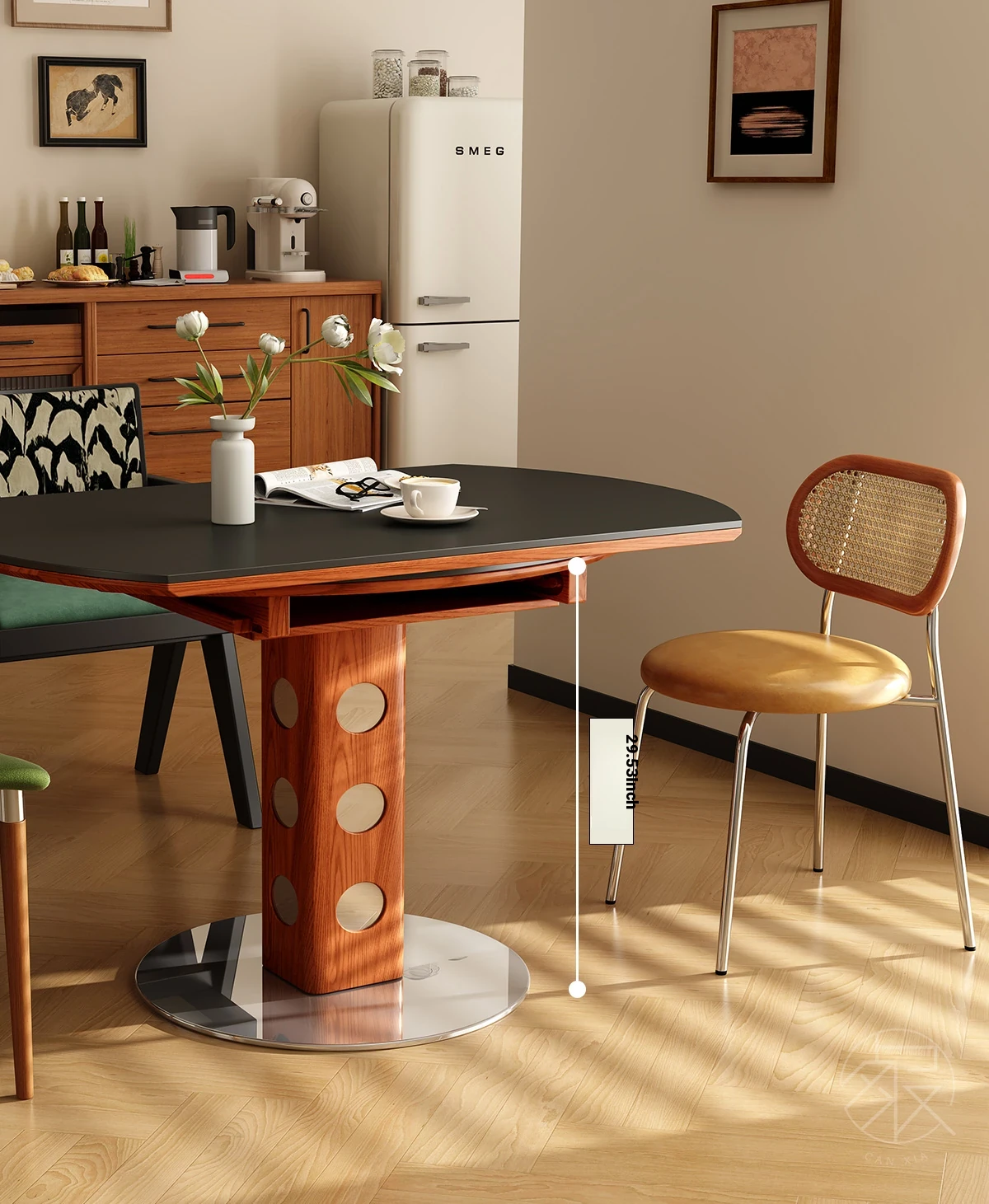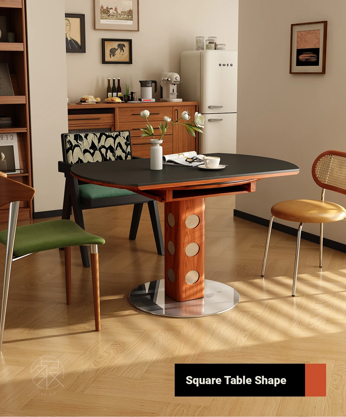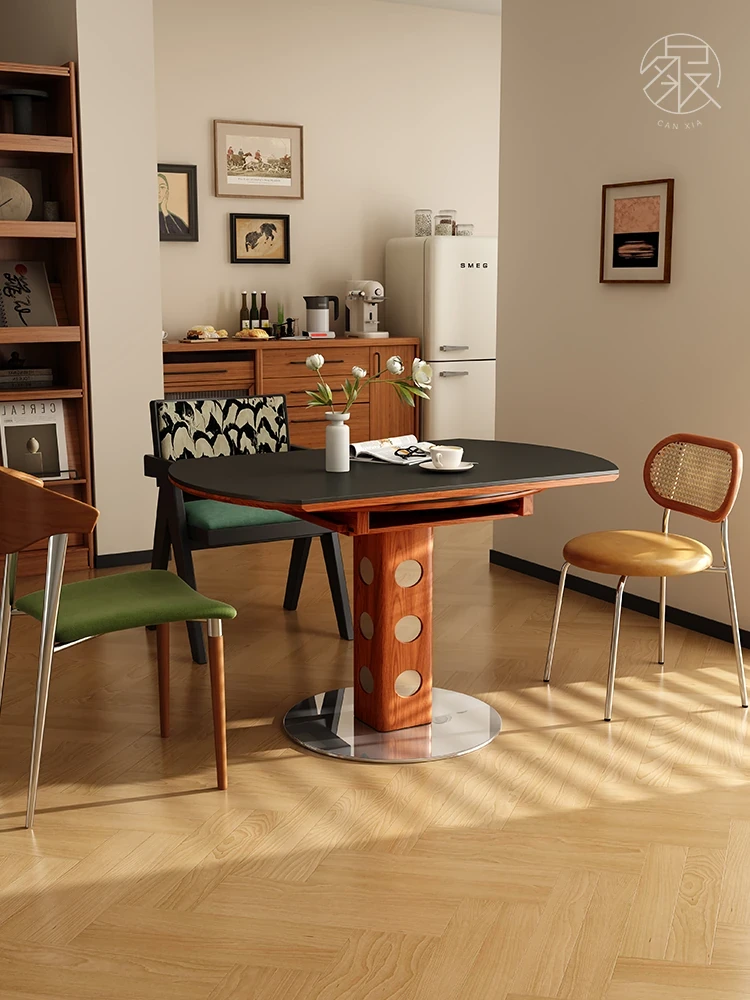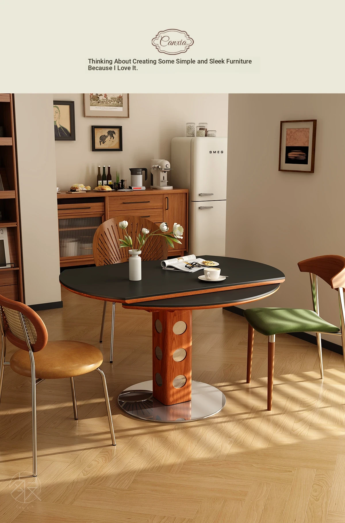 華やかなデザインのミニマリスト中型テーブル|家庭用・リビングに最適!バウハウススタイルの折りたたみ式ラウンドダイニングテーブル、小スペースにもぴったり!